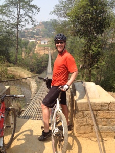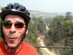 We crossed steel suspension cable bridge today that was extraordinary! We rode down this bridge that was slightly wider than the handlebars of your bike, and I really had to suspend my sense of fear and avoid looking down at the chasm and river below we were crossing. It was really exciting actually!