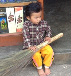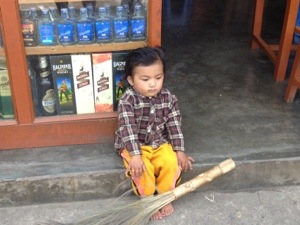 This day started after experiencing the second worst sleep this trip in a really wanky Nepalese hotel where the people running it seemed truly pissed off we were there. Food nasty, rooms nasty, bed really nasty… On the other hand, from the roof you could see Nepali life go by, and the opening above our shared outdoor sink looked over a beautiful terraced valley. And the dramatic thunderstorm before dinner was really great! This morning, a funky greased egg-fest for breakfast and off we go.