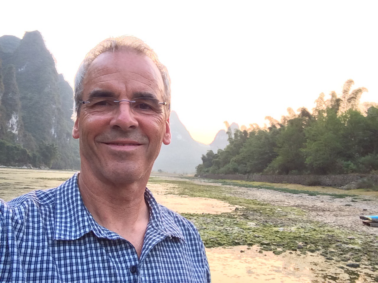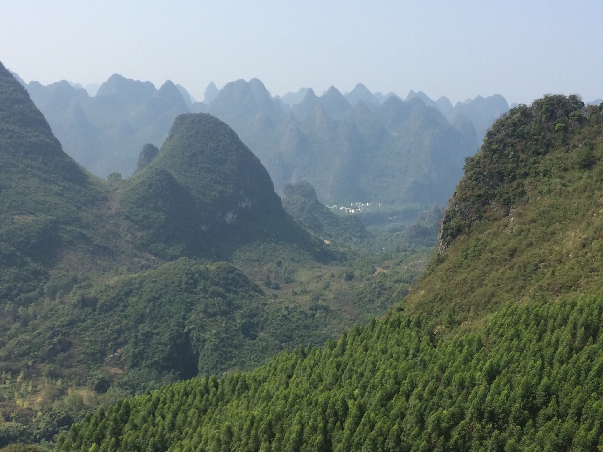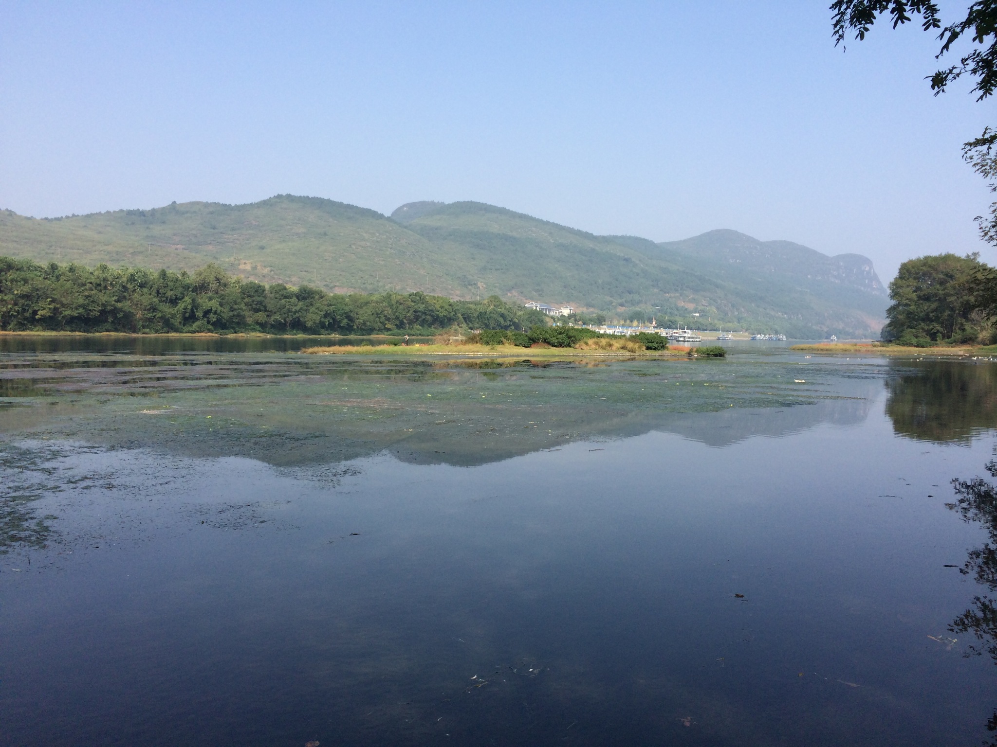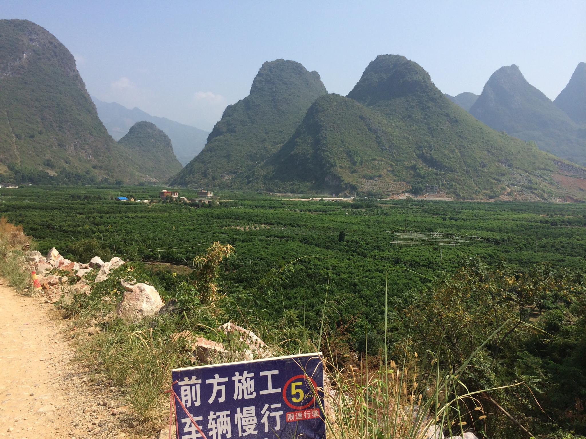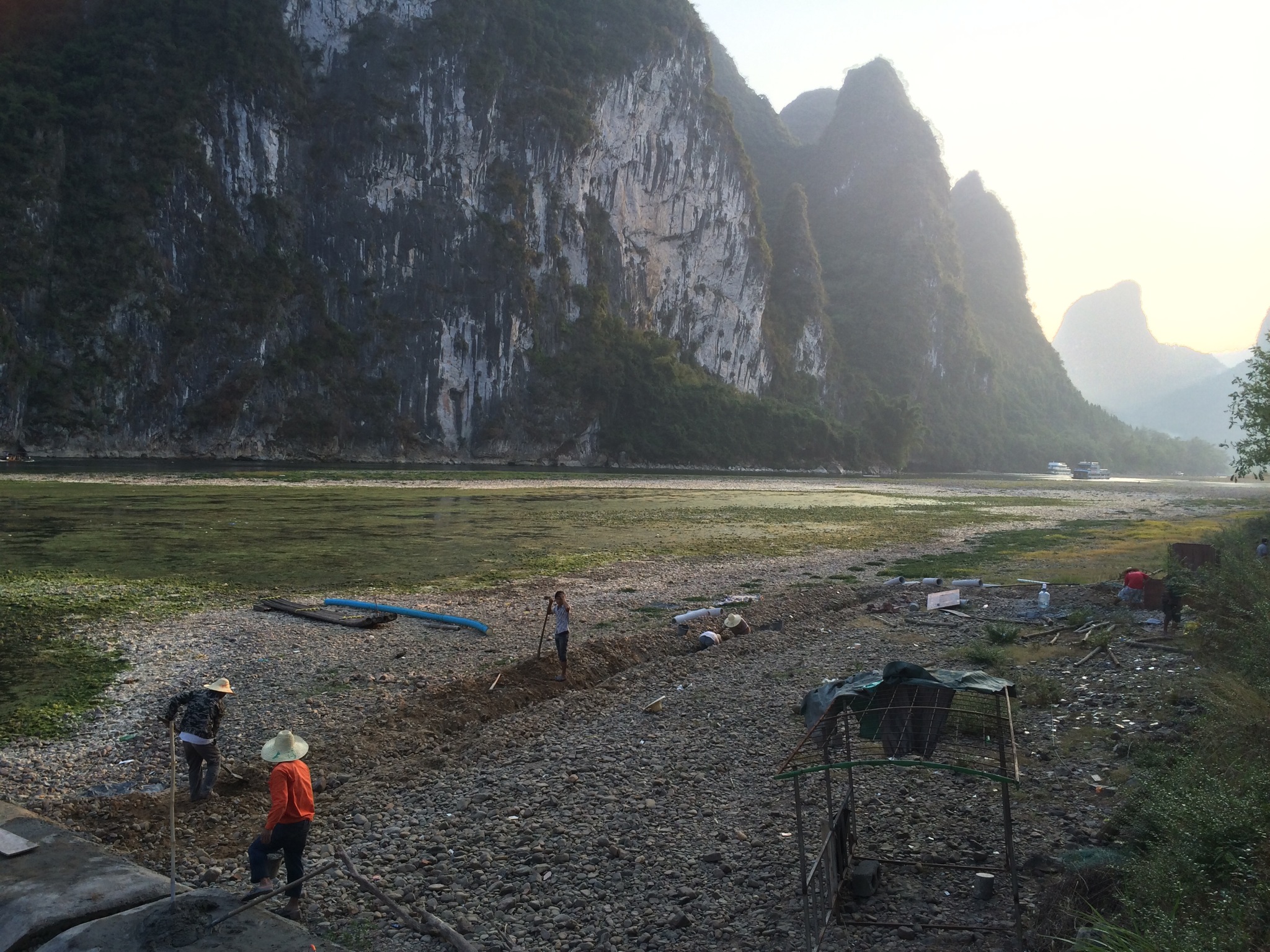 Today’s ride was epic! The sun was out, it was hot, there were some fantastic hills without any traffic, we were in the midst of limestone karst country, the Li River for was visible from many vantage points, the surface on much of today’s road was absolutely smooth, I don’t think you could’ve had a better cycling day! Well, except that I broke my chain for the third time. I’ve never broken a chain in my entire cycling career, so to break one three times on this bike is unusual. I will talk about the day in chronological order of course, but finishing with the evening discussion at the table for dinner, Chu told me that they have had the same problem with this bike before, breaking a chain on the prior trip. Tells me that I was using a repaired chain. When you push the pins out of the links, they’re never quite the same and that’s what I attribute my break issues, not my riding style. They finally put on the new chain today, no problems since! In fact, somehow today I got 40 minutes ahead of the group, they all said they wanted my old chain back on the bike to slow me down! Funny, but made me a little proud of myself too…! On arrival here, I got to sit under a shady banyan tree for half an hour sipping a very cold Coca-Cola waiting for the other folks to arrive…