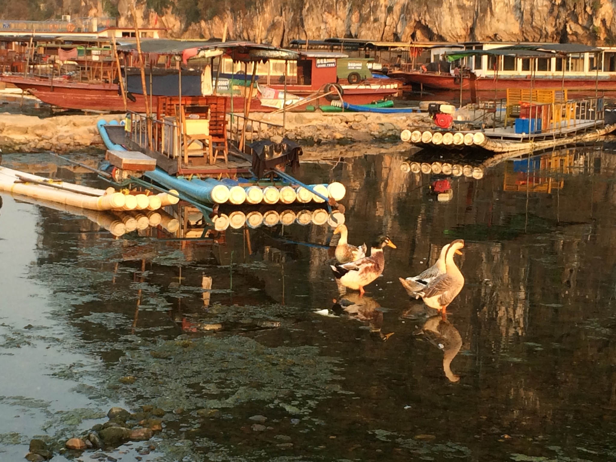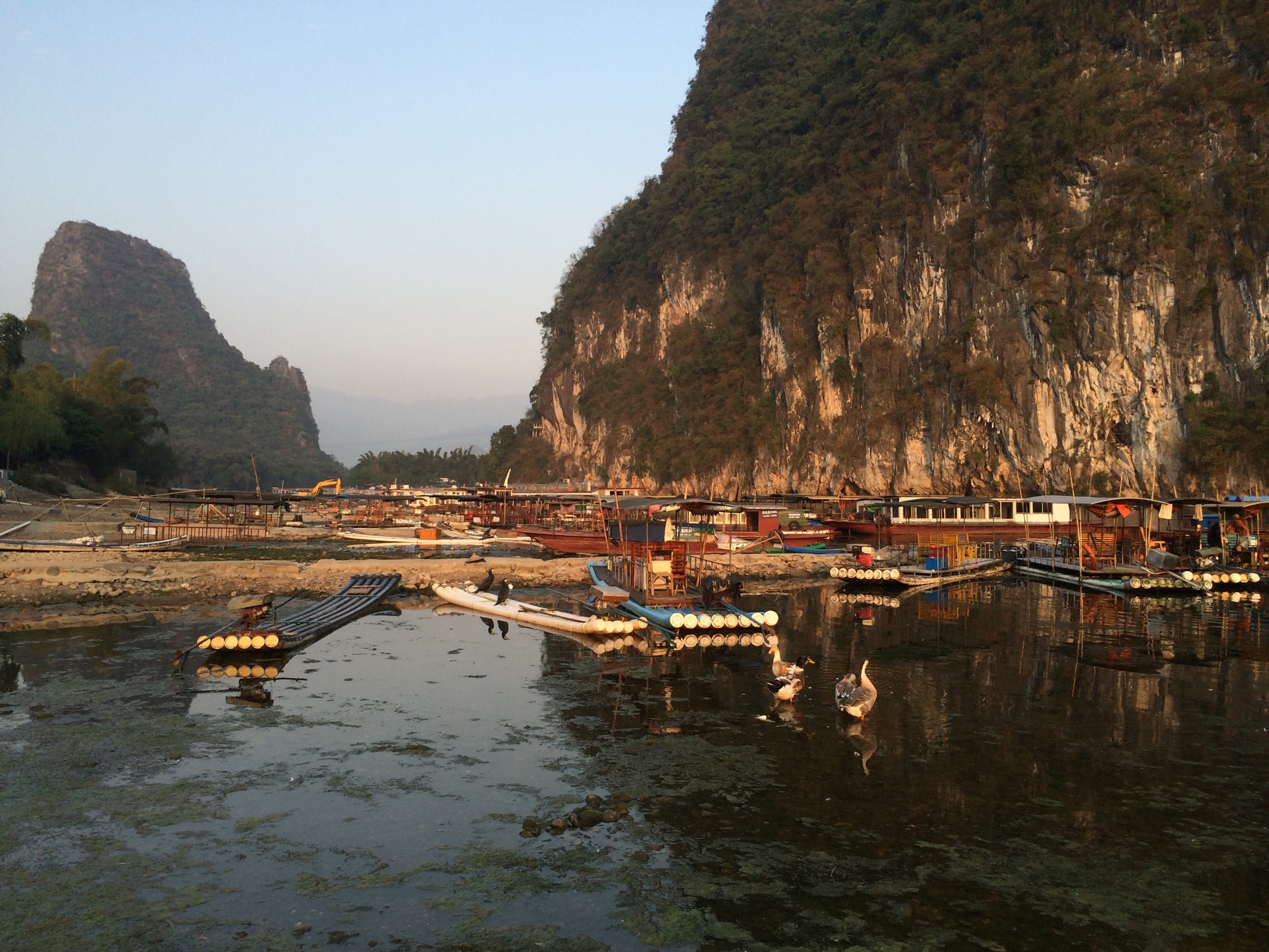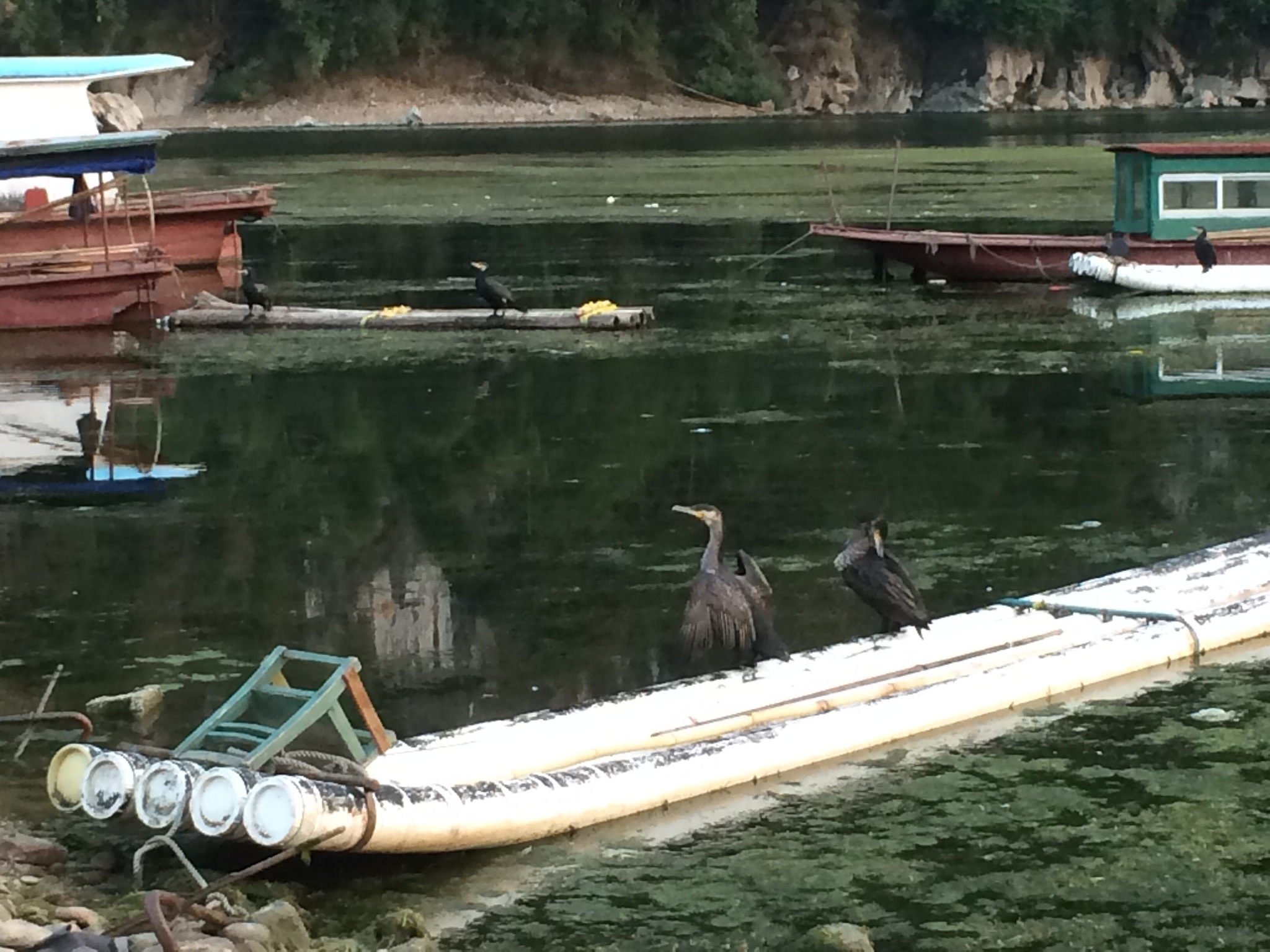 Then I walked down to the river, just a short two or three minute walk from where we are staying, and saw a lot of activity there. Most interesting are the cormorant fisherman. What these guys do is they have two cormorants tethered to their small bamboo boats, in the evening and at sunrise they will take the boat out, the cormorant will find a fish, grab it in its beak, the fisherman will pull the cormorant back to the boat and essentially steals the fish from him. This is a unique method of fishing, it is said this is only practiced in China but who knows for sure if that’s actually true… But it’s a good idea!
