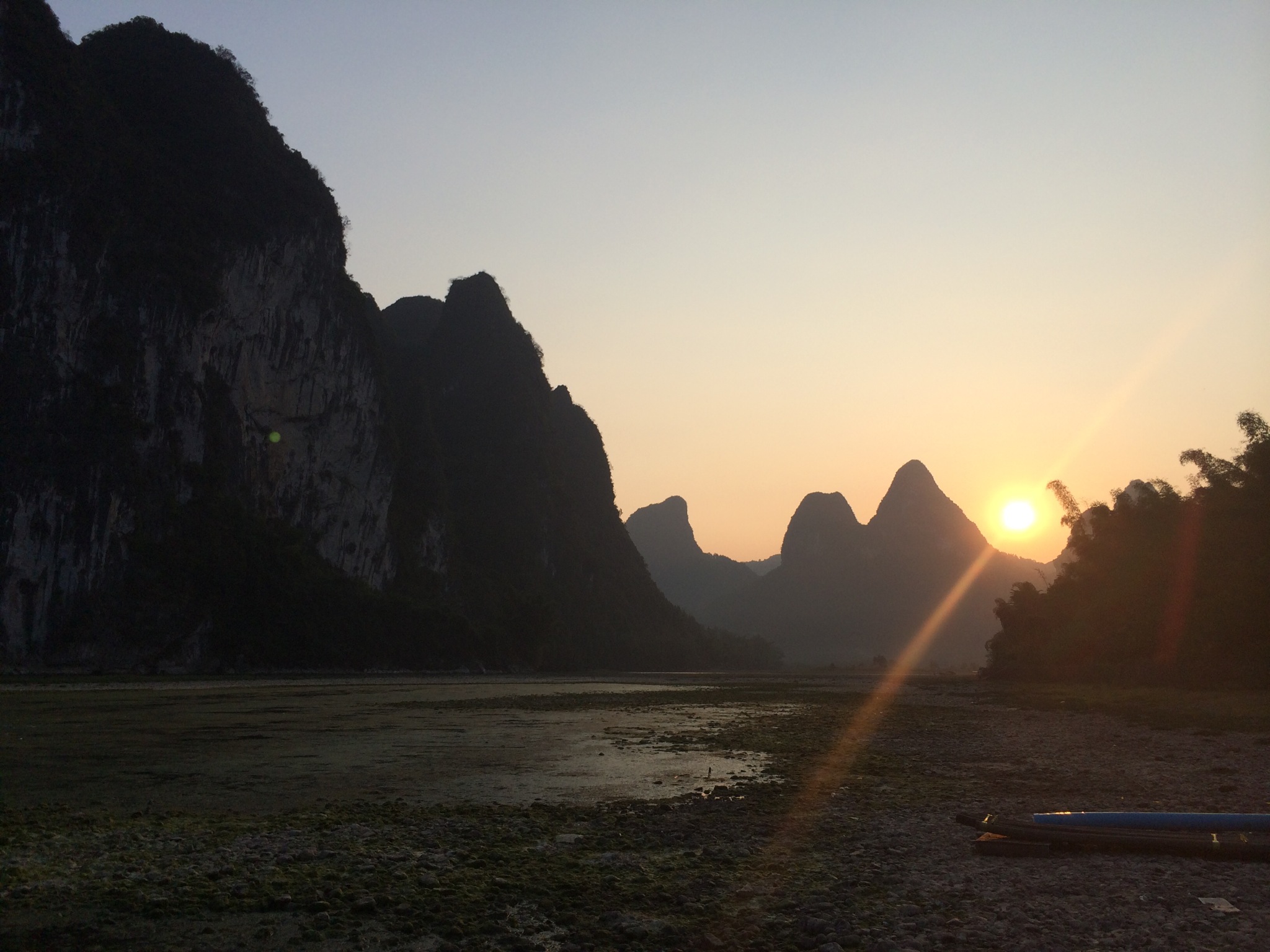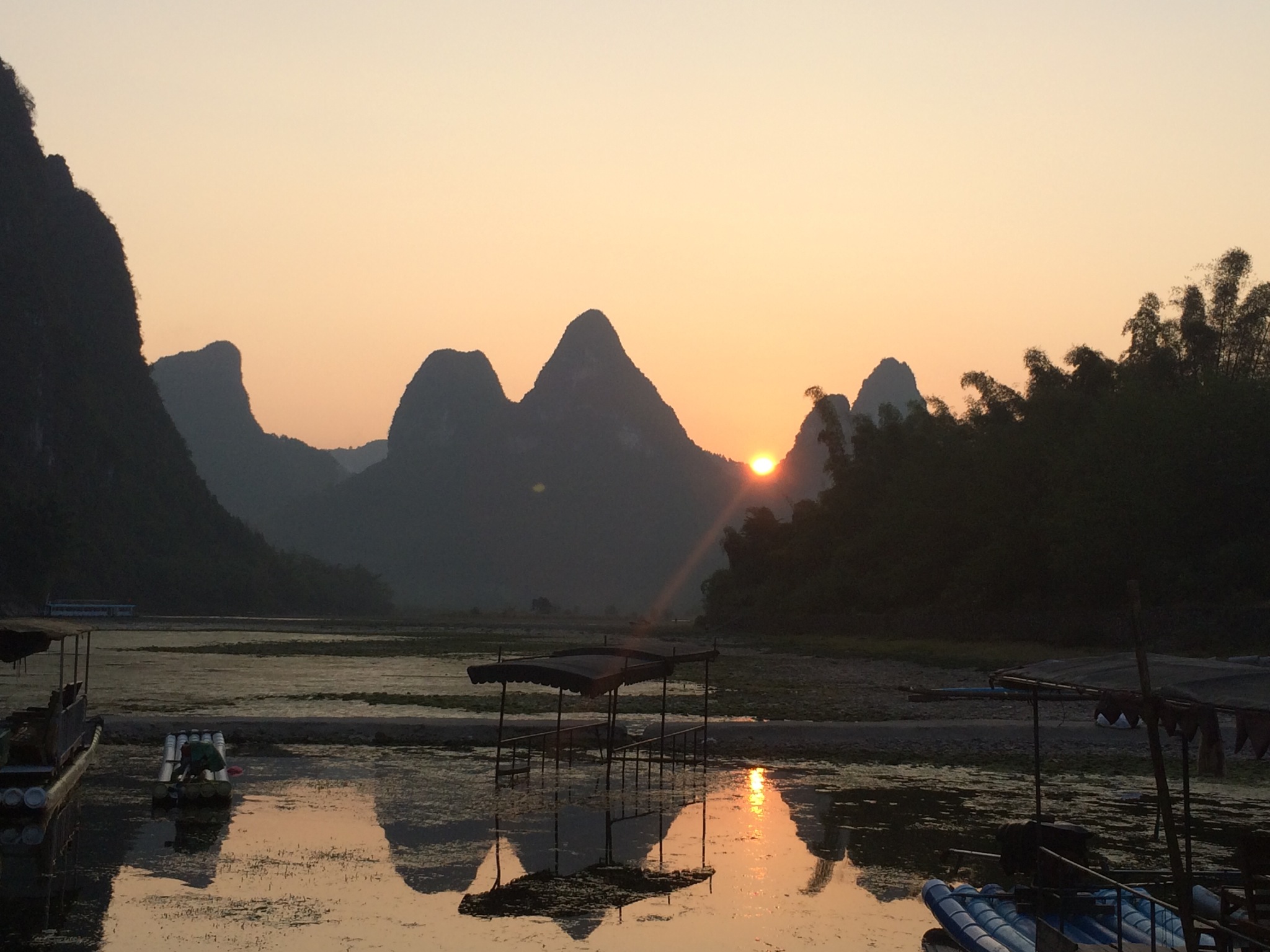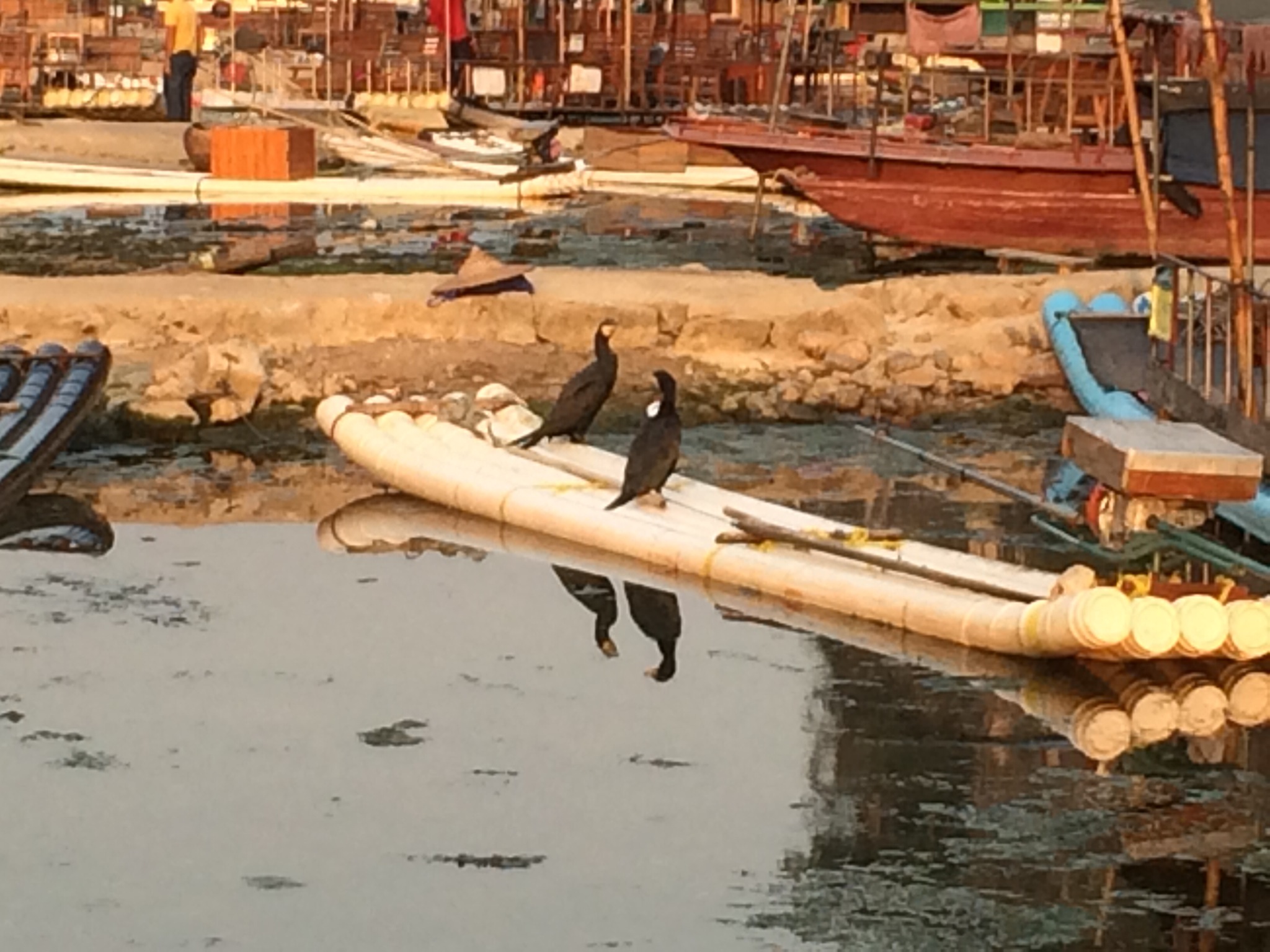 Then I walked down to the river, just a short two or three minute walk from where we are staying, and saw a lot of activity there. Most interesting are the cormorant fisherman. What these guys do is they have two cormorants tethered to their small bamboo boats, in the evening and at sunrise they will take the boat out, the cormorant will find a fish, grab it in its beak, the fisherman will pull the cormorant back to the boat and essentially steals the fish from him. This is a unique method of fishing, it is said this is only practiced in China but who knows for sure if that’s actually true… But it’s a good idea!