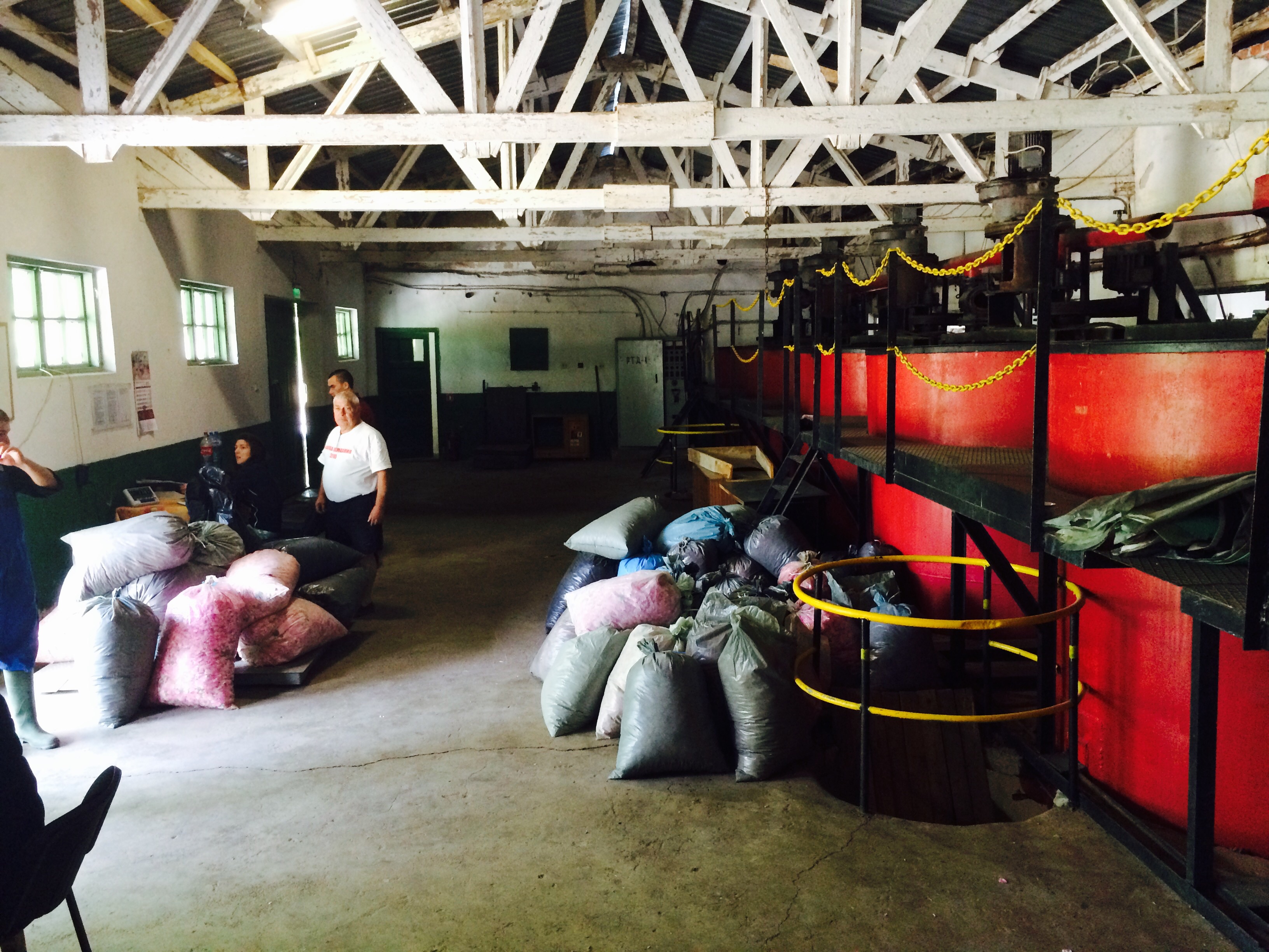 The rose oil factory at the bottom of the hill was very interesting, the Rose leaves are picked in the morning from 5 AM to 10 AM only, while moisture content is highest. Once picked, they are put into large bags and brought to the factory and weighed for payment. Essentially they are boiled in water, and then the same process of distilling alcohol is used where the Rose oil vapor is captured. A kilo of rose oil can cost close to €9000!