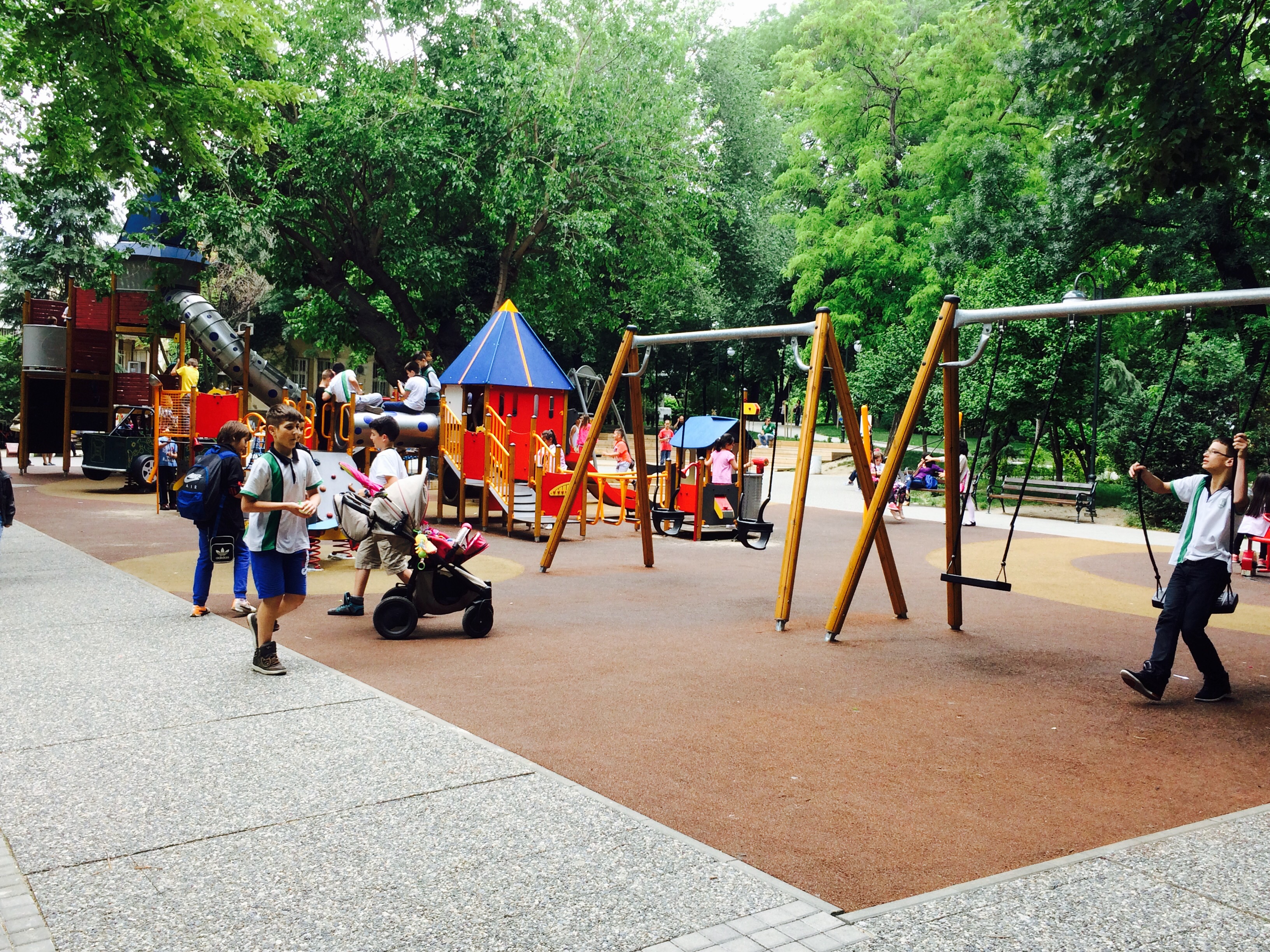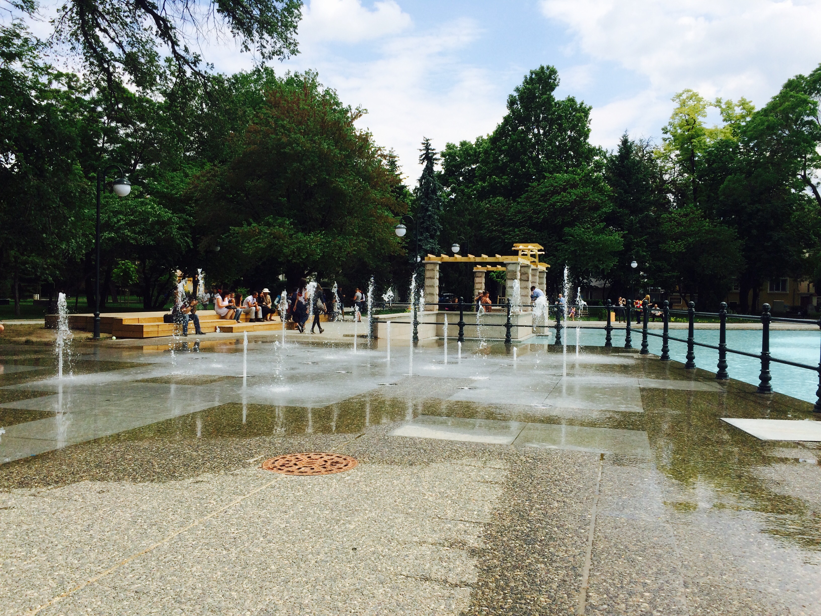After an unremarkable lunch, the group split a bit, Paul and I walked to a large city park that had some very interesting water fountains in it; public park spaces are always interesting to me as the modern United States seems to have forgotten the value of large public park spaces that aren’t dominated by retail business.