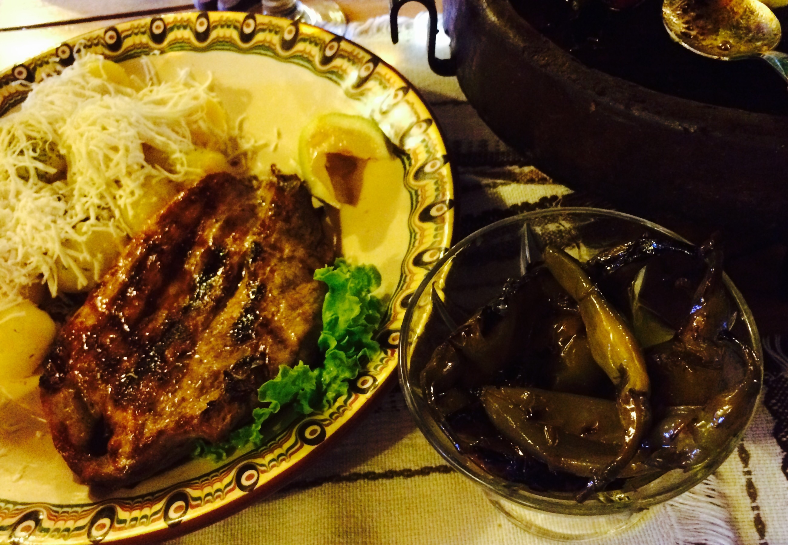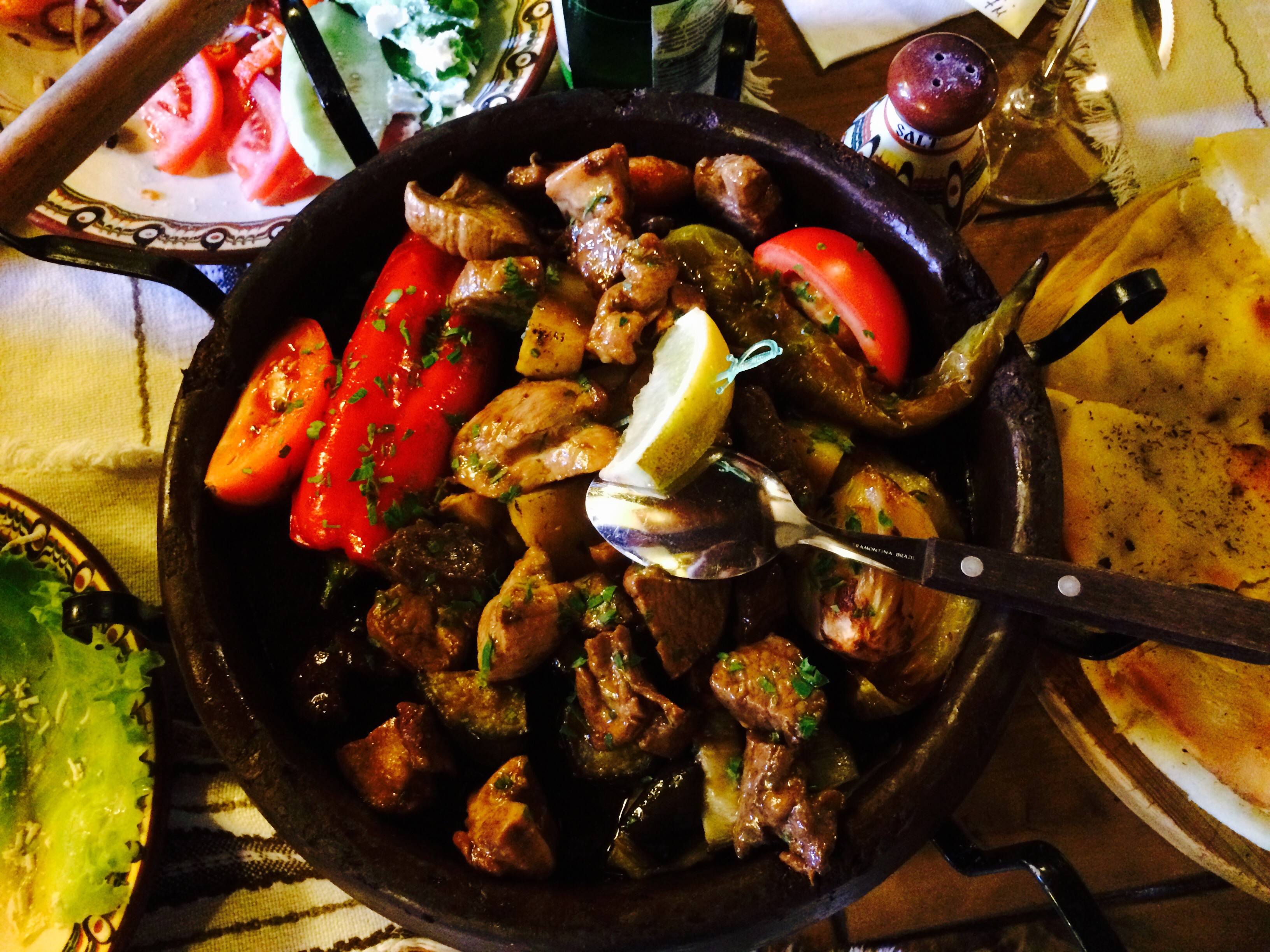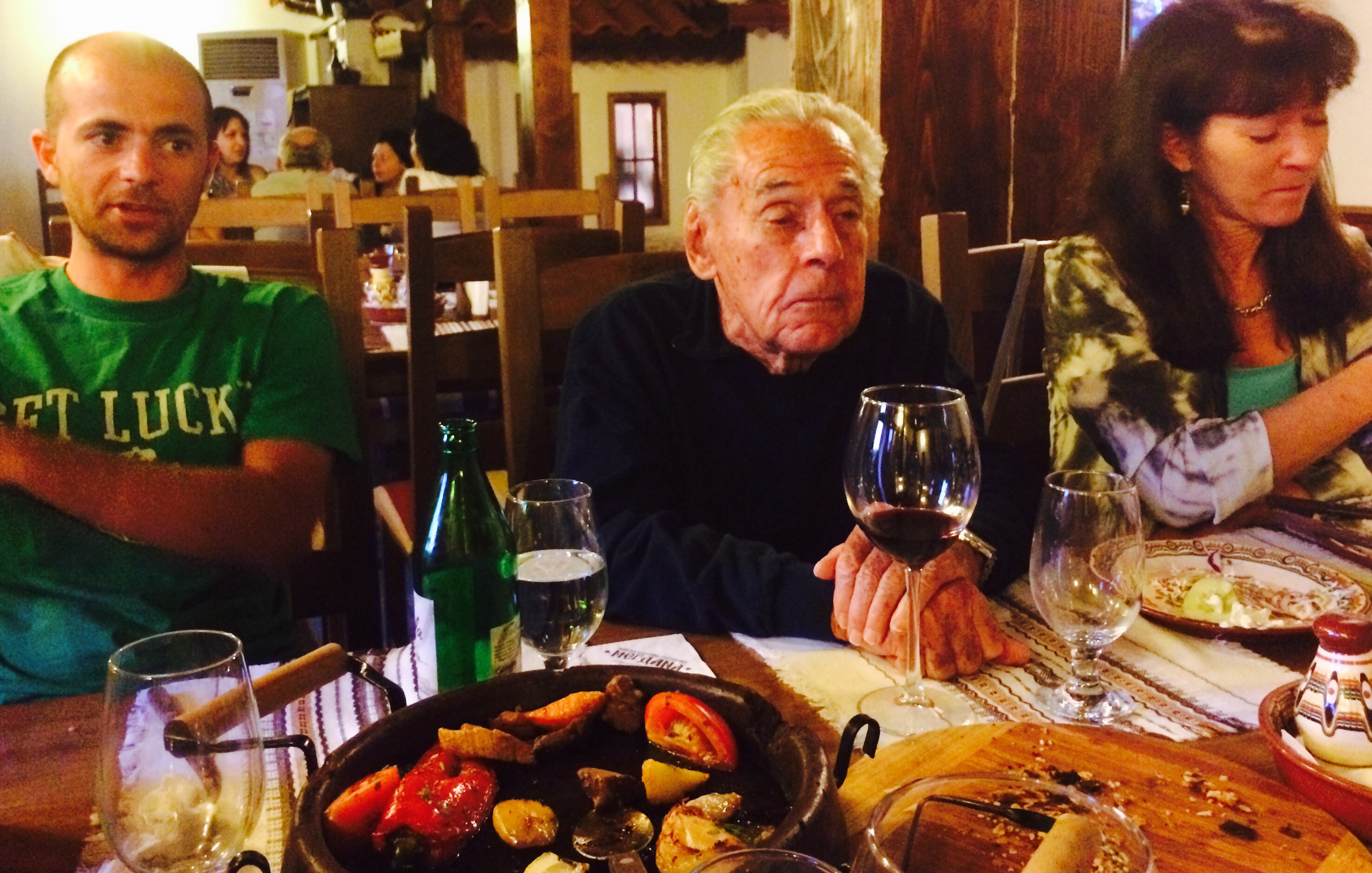 The food was very good, I had a Shopska salad as always, and then ordered a combination meat and vegetable dish that turned out to be about 90% meat! Pork and chicken and veal, all grilled and marinated and very tasty. Orlin also ordered our favorite pickled hot peppers! Yummy! The table shared a bottle of local Bulgarian wine, a merlot. Paul and I had a tasty gin and tonic! It’s always served with the gin in the glass, comes with a can of tonic on the side and a bowl of ice. You basically organize your own drink. Very good!