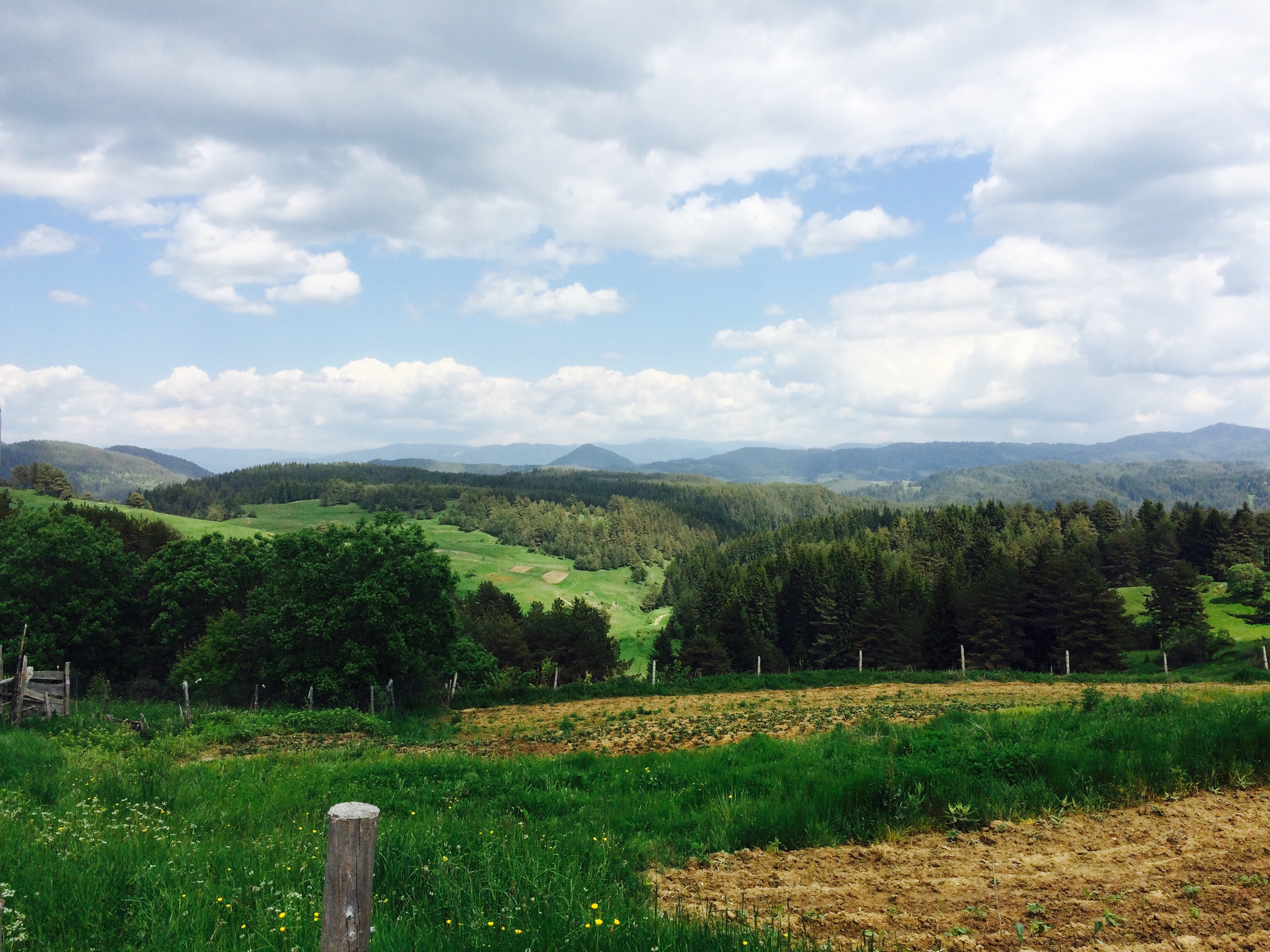 After a tasty breakfast of paper thin pancakes with apricot jelly, fig jelly, and delightful honey, we started down the hill in the very crisp mountain air!
