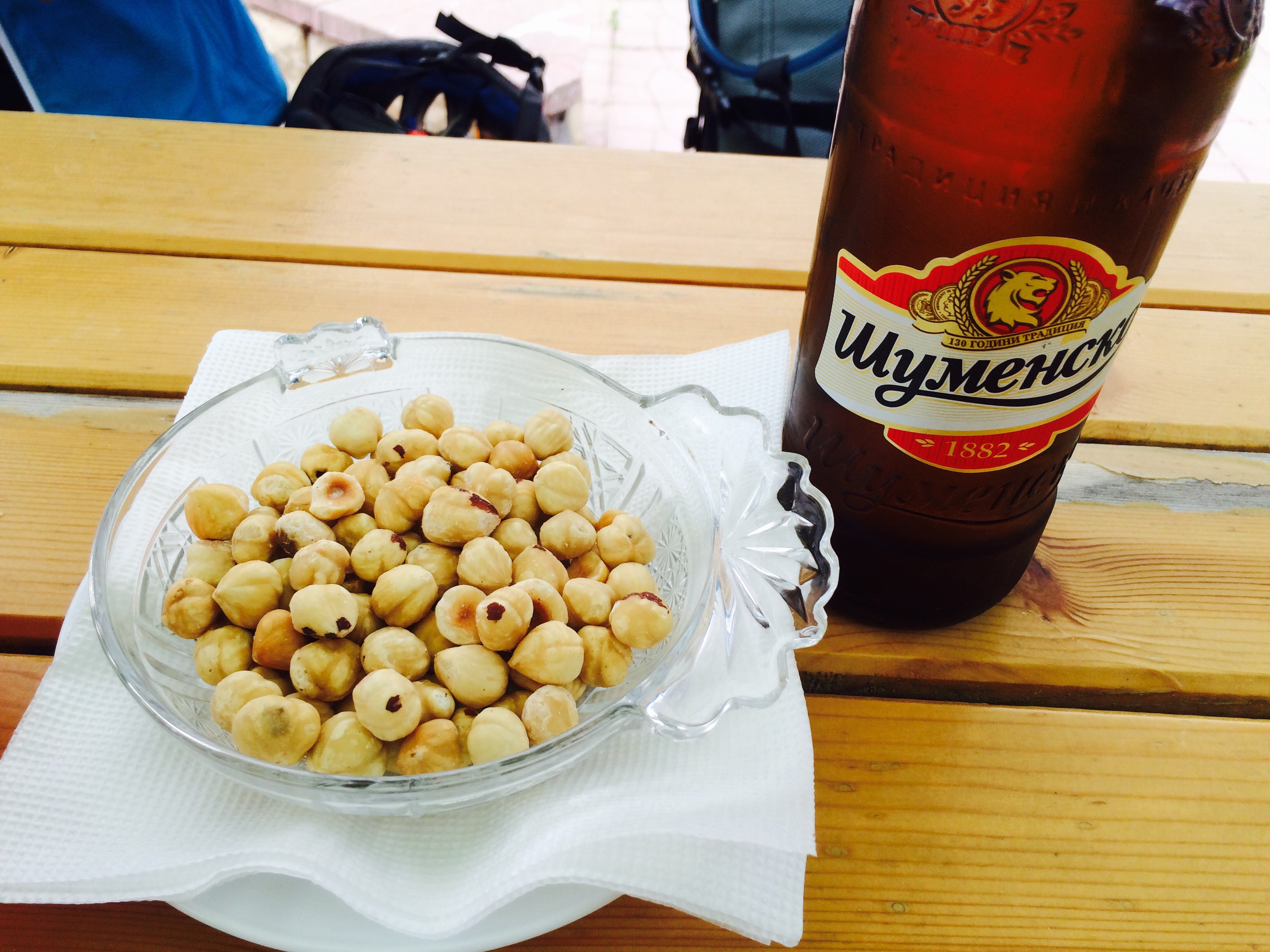 On arrival at the hotel, the restaurant was sunny and the three of us that arrived first had an ice cold Shomansko beer and a plate of hazelnuts. Priceless!