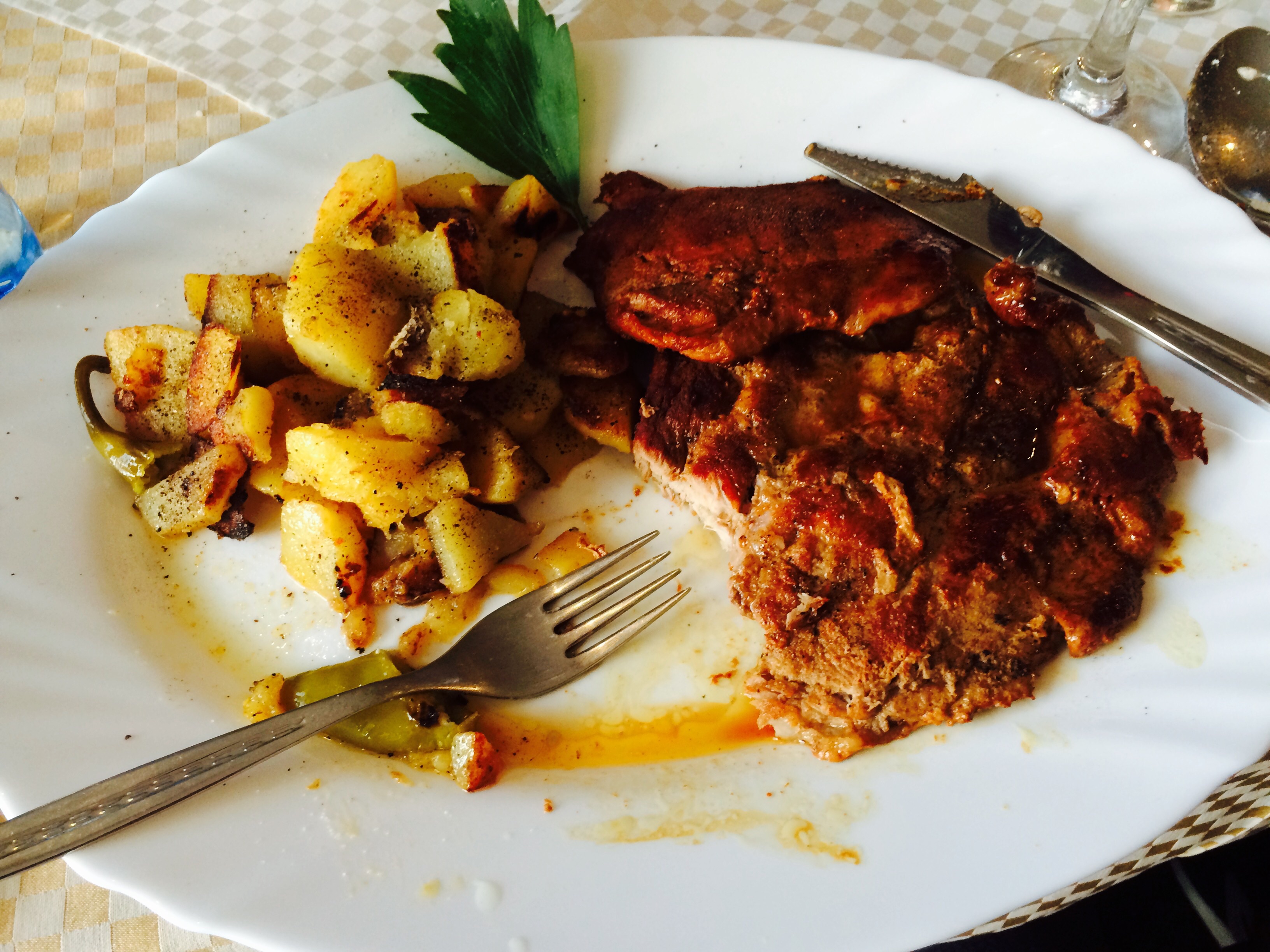 We had lunch at a nice restaurant in the sun under umbrellas near the cave entrance, I had a bowl of tasty beans soup which is a common Bulgarian favorite, and a lasagna that was made with minced pork in layers of potatoes and onions with some cheese on top. Very tasty as I am a huge potato fan! The Bulgarian version of Greek moussaka I believe…