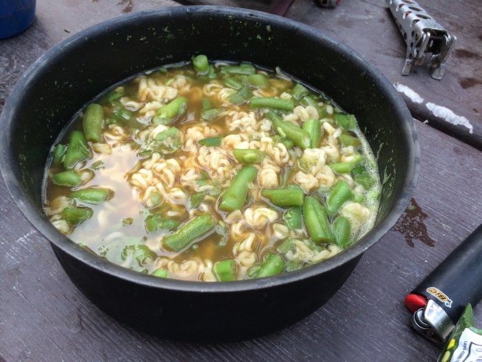 A nice din; ramen as appetizer and then dry potatoes mixed in with dried burrito skillet. You put enough spices in anything and it’ll taste great!!