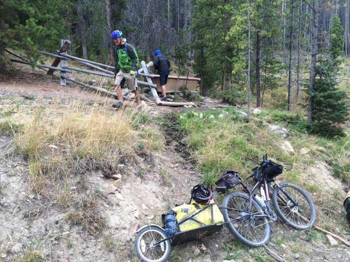 The afternoon brought us Stemple pass, up to 6380′ from a start of about 4000′ at Lincoln. Well, that was one tough f’n climb up a rocky trail, lots of pushing the bike… And the weather got crappy, much colder, strong winds, and intermittent very biting cold rain. A tough slog! But I’m very proud of my peeps Dave and Chris for hangin in there late in the day.
