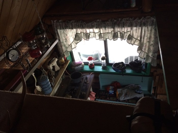 We had a nice communal dinner and evening in the wonderful cabin…eventually sleeping in the lofts, Dave downstairs since he’s always the first up. A special day… But the wind absolutely pounded the cabin all night and through the morning! Felt like 60mph gusts at times!!
