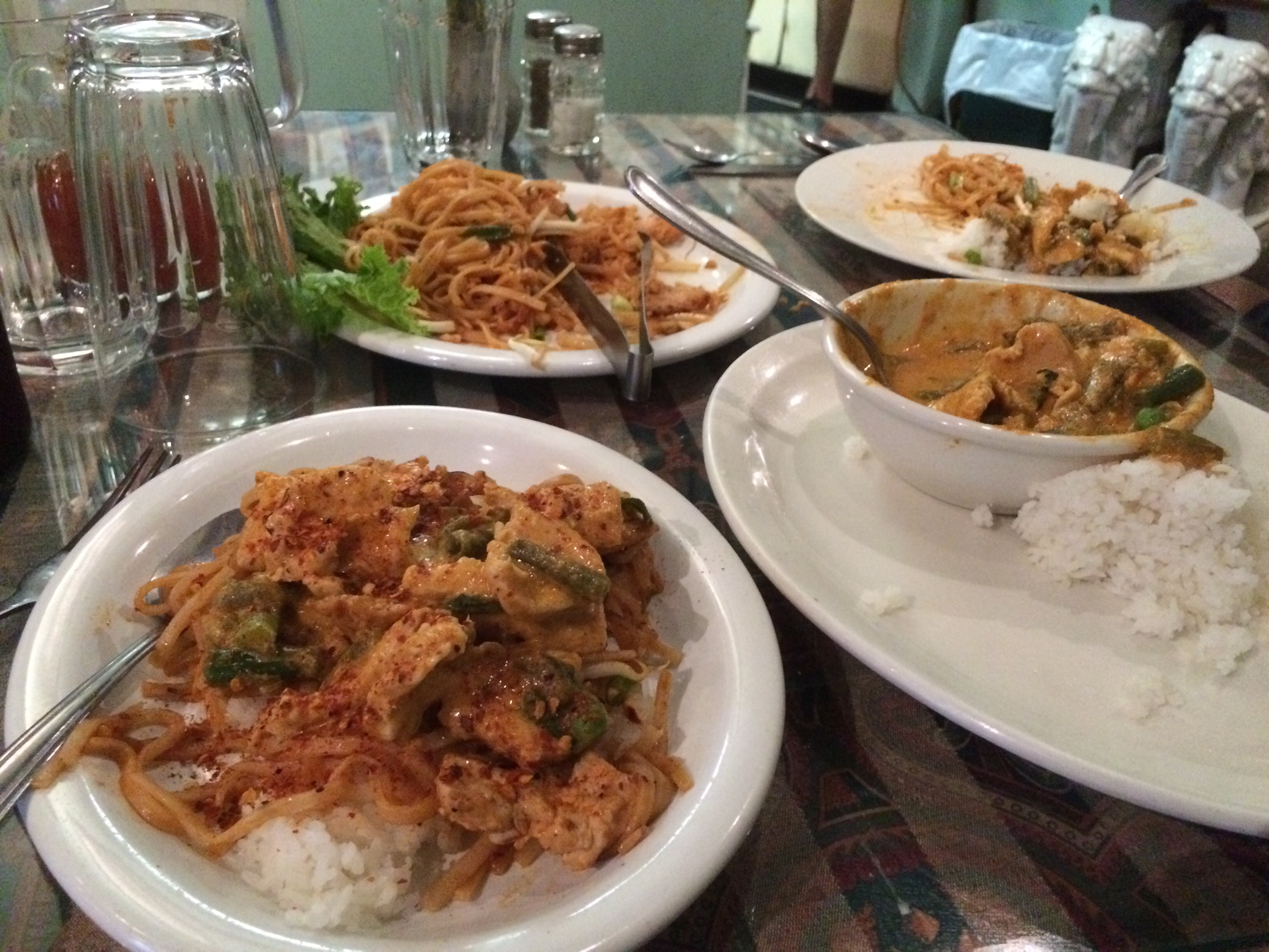 Back in Helena, returned the car and rode my bike back to the motel. Did some laundry, repacked all my gear, sent my old sleeping bag back home, eventually Dave and I went to dinner at a Thai restaurant a block and a half away. Compared to the overpriced cheesy oily crap we had last night, this was an absolute delight! A little low on the spice for my taste, but they had plenty of means to spice it up! Dave and I shared pad Thai and Penang curry chicken.