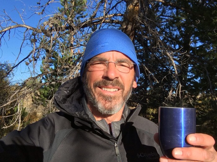 Stayed cocooned in the tent until 735am, ice had formed all over the fly, but unzipping to exit revealed blue sky and some warm rays of sun reaching my little storm haven!! Double hot instant oatmeal and coffee…here we come!! Such simple but meaningful pleasures.
