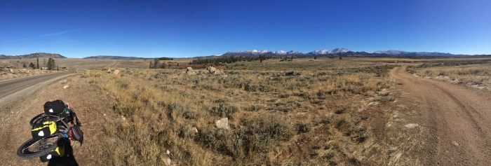 At some point, riding literally on the top of the Continental Divide, three deer ran along side me for a quarter mile… And I have certainly had birds parallel me for a distance as well. Today was nothing short of extraordinary. While I cannot upload videos to this blog, I did post to FB the extraordinary 360′ view from the top of the divide today…