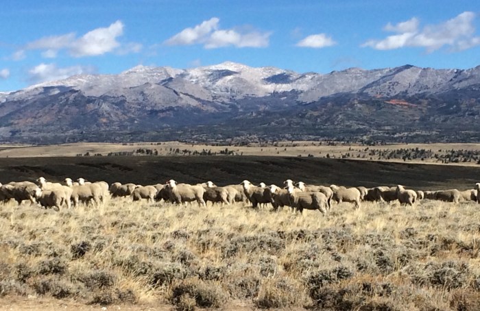 *The flock of sheep look like they were in the middle of nowhere. Were they fenced in? Was there a ranch nearby? Or a shepherd guarding them? They seem very interested in checking you out.