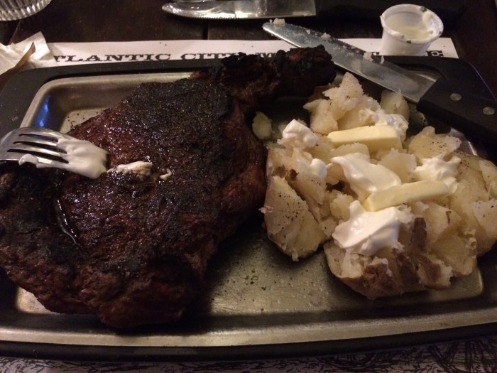 At the restaurant, what a throwback in history! Pretty much the only thing on the menu is steak! And the smallest ribeye is 20 oz!!!! This place pretty much unchanged since 1900…