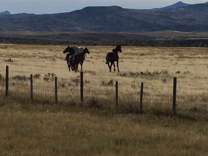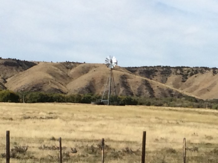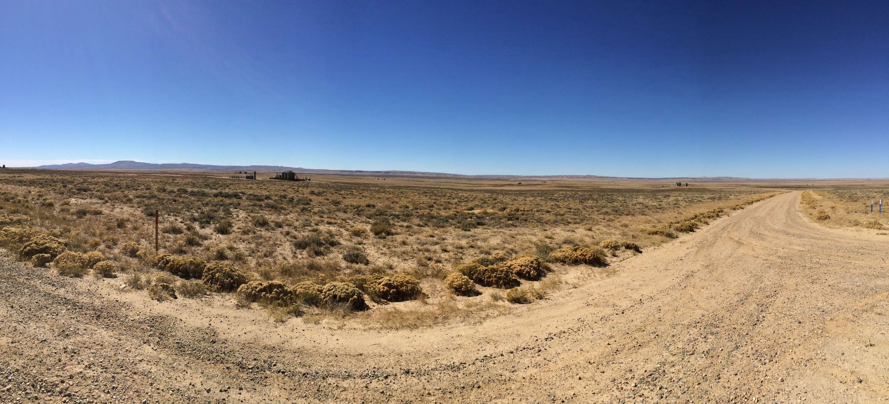 Through oilfields all day on washboard to Baggs. Need to restock a few groceries there. Still no trees. Wind. Sun. Wind. Oil fracking units. More endless wind…