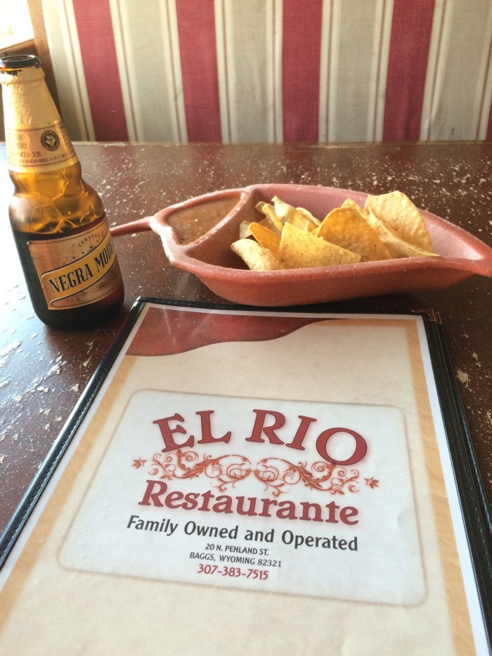 Eventually in Baggs, I get a cozy room among many oil field workers at the Cowboy Inn. After grocery restock at the Stage Stop, I walked up to El Rio for a GREAT Mexican dinner. Carne Asada tacos with roasted jalapeños on the side, Negra Modelo x2! Absolutely delicious!! Licked the plate clean!!