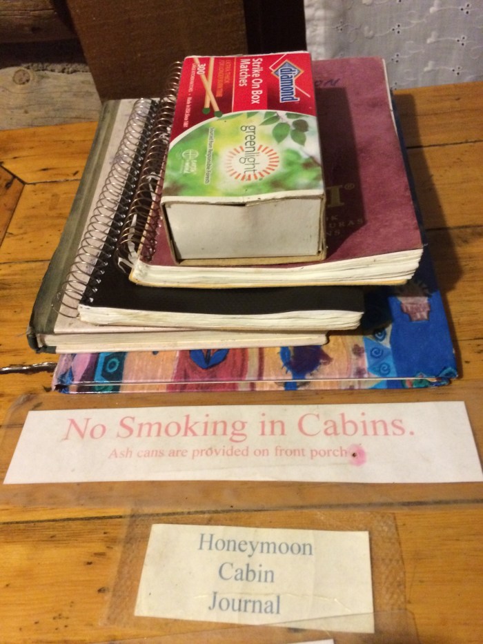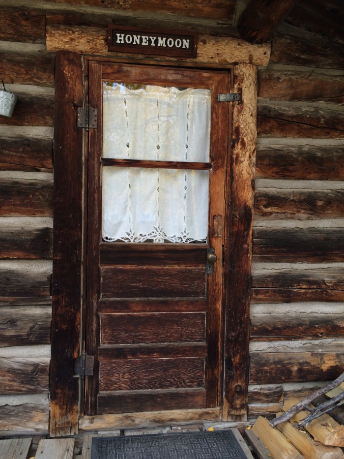 Now these are old old cabins, and when I enter the honeymoon cabin, I’m instantly reminded of Confusion Hill, a place we went to when Rory and Zeen were young on old highway 101 somewhere in California, I think? (Do you guys remember?) It was one of those places where rooms are slanted, walls aren’t square, and you sit in a chair and experience angular disorientation.