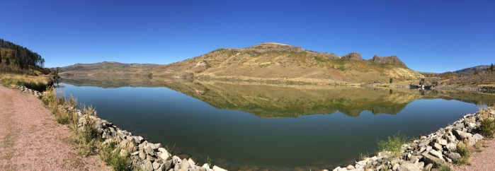 Leaving Silverthorne, the bike trails are great! In fact there is a dedicated trail all the way from Silverthorne, along beautiful Dillon Reservoir, to Frisco, and into Breckenridge. Really good condition, excellent signage, really first class!