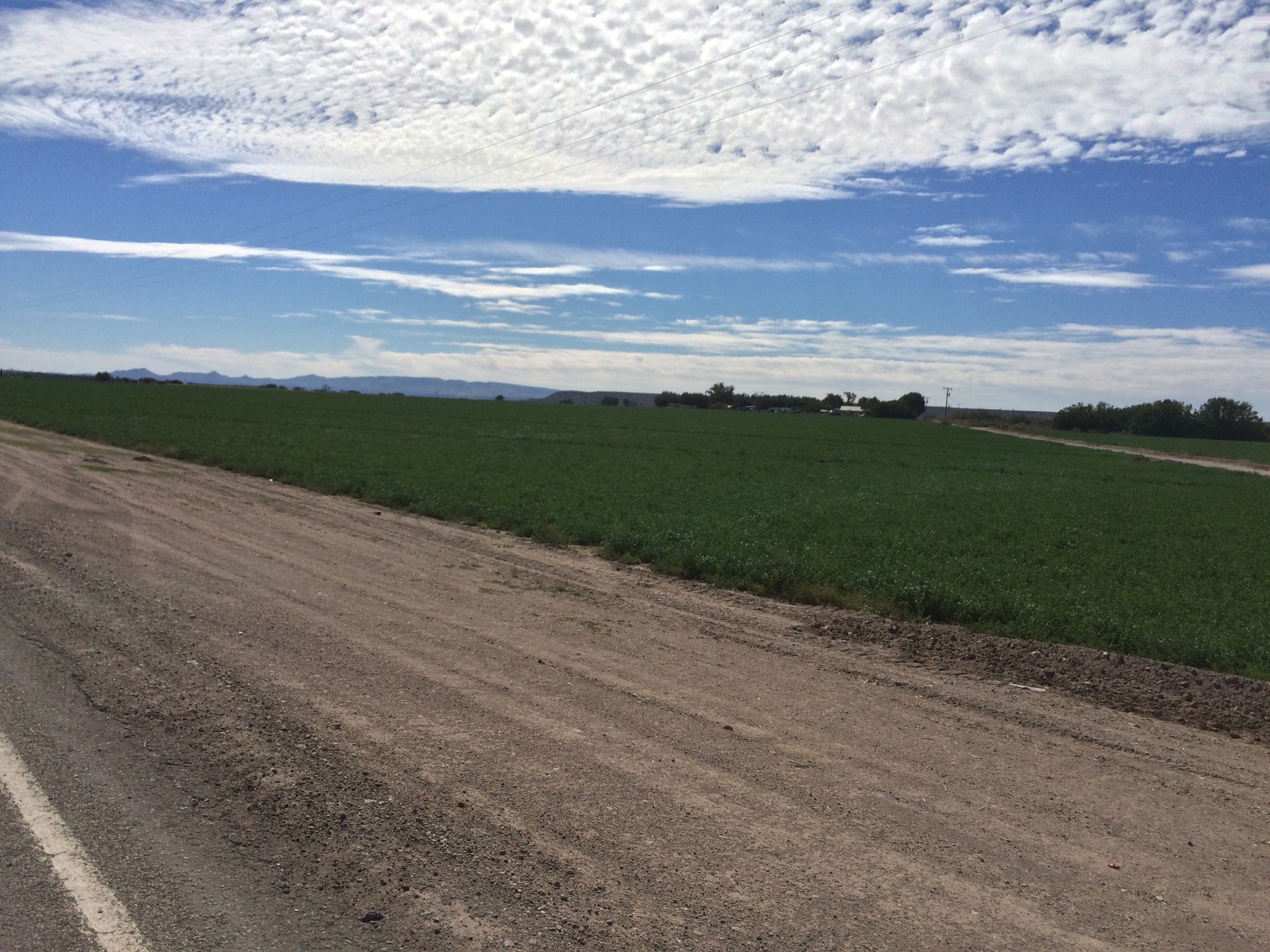 What a beautiful day day of cycling through red and green chile fields, cotton fields, corn stalks and walnut farms. With a nice tailwind all day! One of the most pleasant days of cycling in memory for this trip.