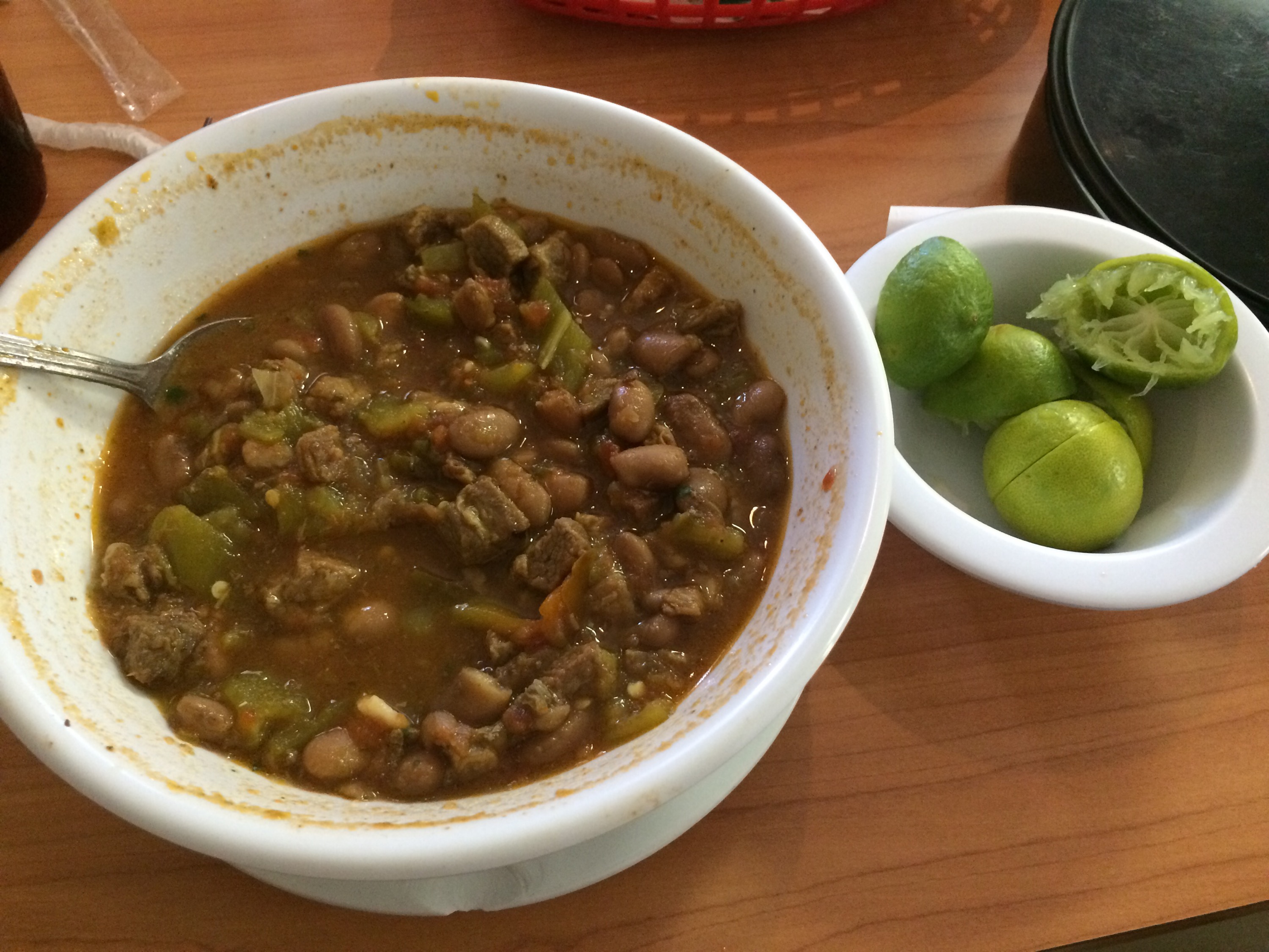 On arrival, we stopped at a cafe for lunch, and I had the best-ever bowl of green chile beef stew with fresh limes. So very yummy! The Best Mexican food of the trip by far, so far!