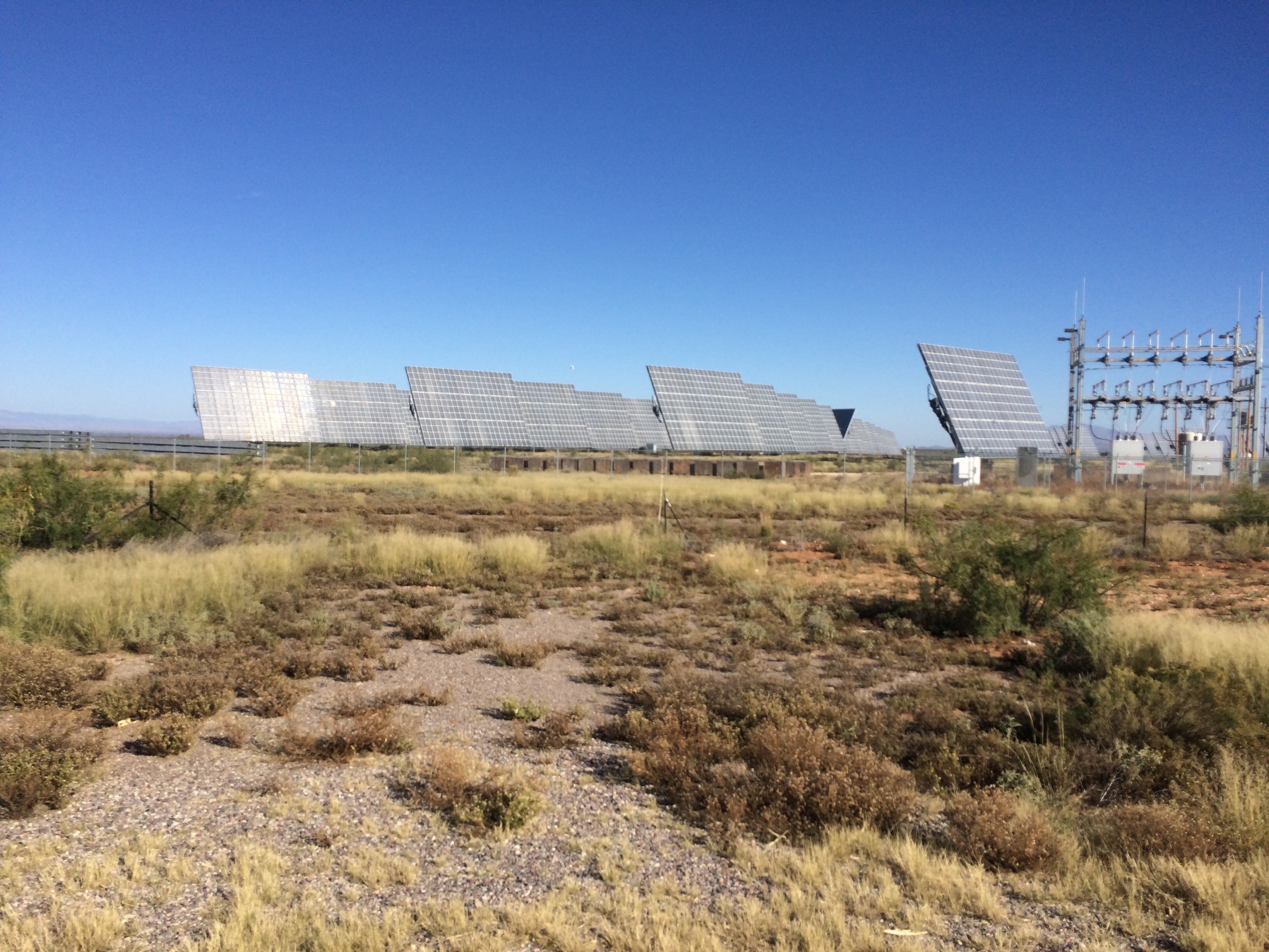 Saw another Solar power farm, probably the third or fourth one I’ve seen in New Mexico. Huge rows of solar cells passively collecting sun produced electricity and feeding the grid for us hungry energy users.