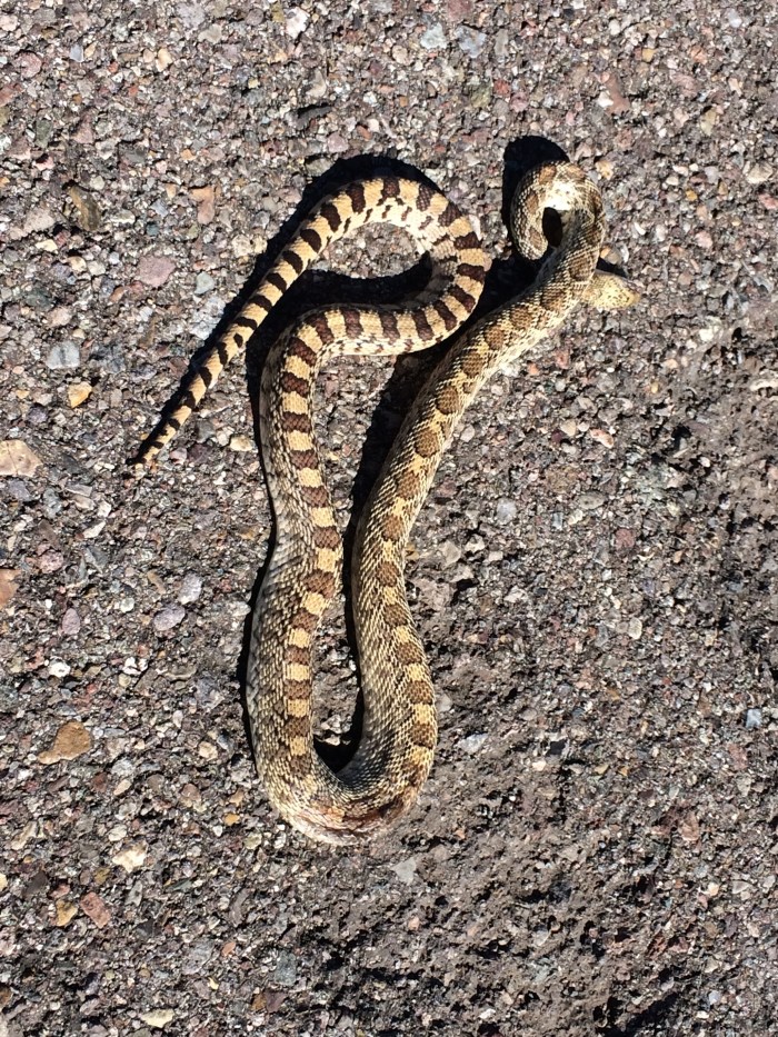 Saw a beautiful (dead) snake on the road! Actually, there has been an enormous amount of roadkill along the way, so surprising to see so many and especially some larger animals flat and dried on the side of the road…