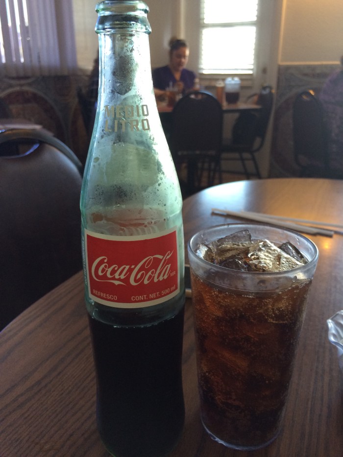 We rode into very small town Columbus, arriving around noon, stopped for lunch at Alma’s for Mexican. As we’ve gotten closer to the border, to become more common to see returnable bottles, the old type that I remember growing up with as a kid, heavy thick glass bottles of Coca-Cola, Fanta Orange, sprite. Ice-cold Coke out of glass taste pretty darn good! My favorite drink while cycling, though in my normal life I never touch it…