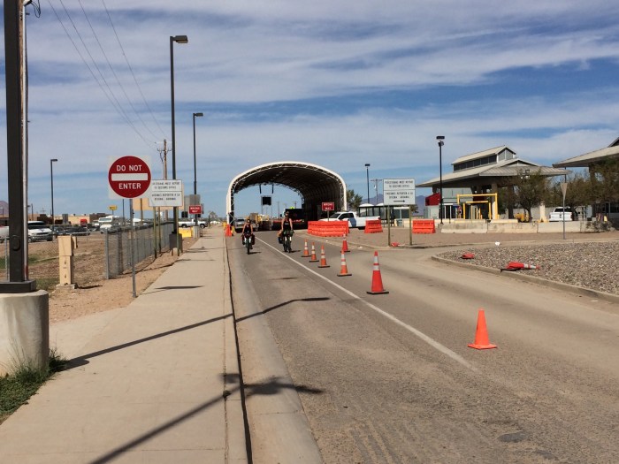 Lunch done, just three more miles to the border! My original idea was to check into the motel and drop off my gear, ride lightened bikes in Mexico, but Danell reminded us that we carried all this stuff from Canada, we should carry it in the Mexico too, so we all rode fully loaded bikes into the border crossing.