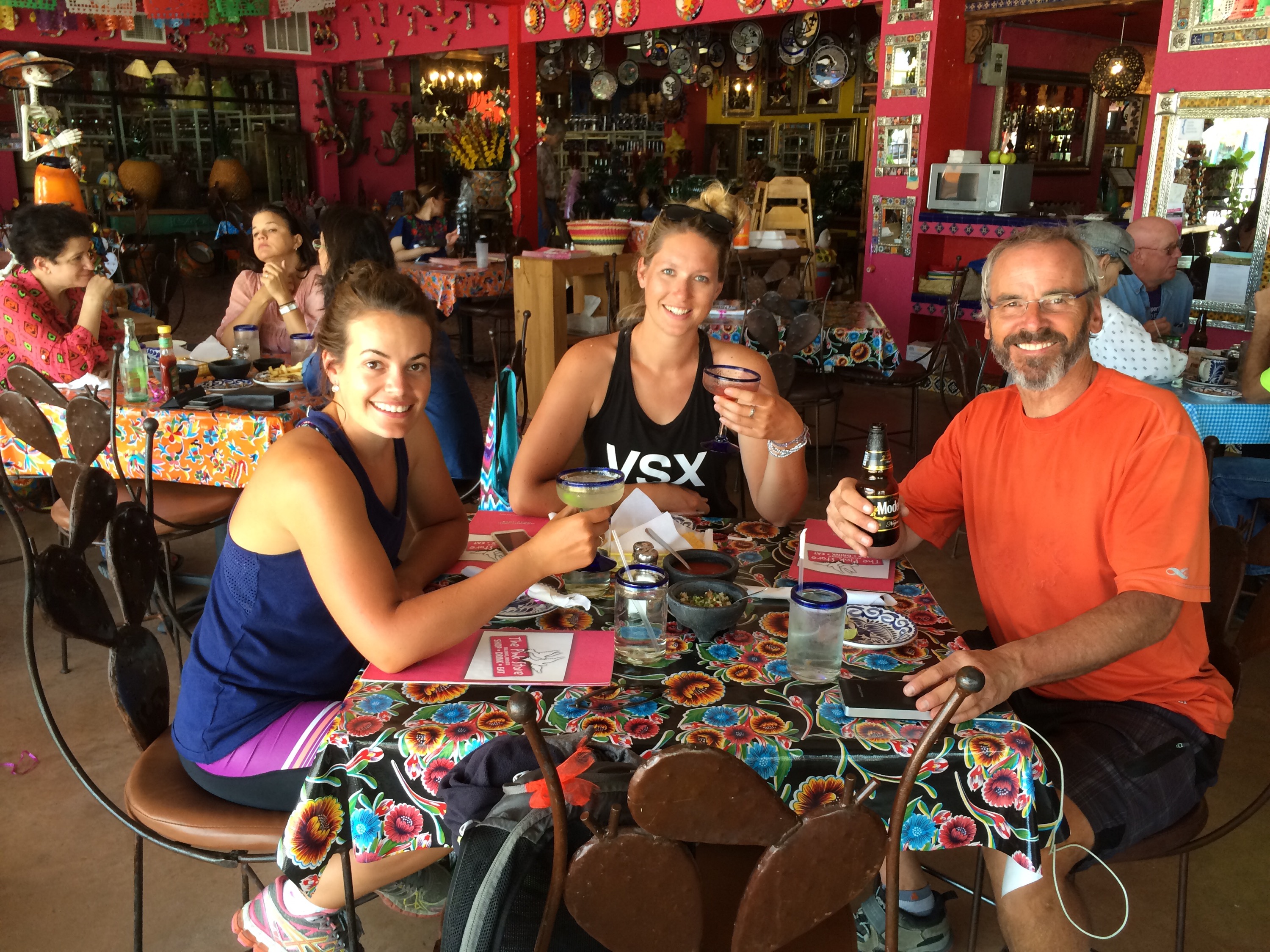 No issues at the border, we pretty much just cycled right into Mexico! Within the first block past the border is a place called the Pink Store, a combination restaurant and gift shop full of Mexican gifts and pottery and trinkets and such. Actually really nice store and operated by very nice people! As we had just had lunch, we just relaxed with margaritas and I had beer and a couple of tequila shots.