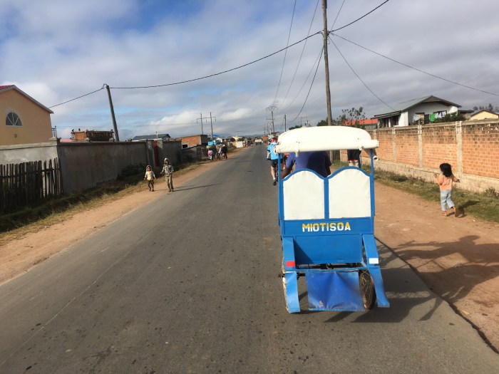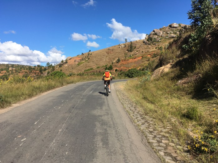 Here is the official summary for today: Today we transfer four hours to Antsirabe, 170 km south of Antananarivo, and on the way stop to visit an aluminium pot making factory in Ambatolampy. The drive takes us along a gravel road in the highlands past rice paddies and fruit plantations, with smiling and friendly locals on bikes waving to us. Due to its geographical setting Antsirabe and nearby thermal springs, at 1,370m/4,500 ft above sea level, has been a popular retreat since the late 1800s. Upon arrival in Antsirabe we’ll meet our bikes and go for a short ride at a leisurely pace with a variety of road conditions ranging from tarmac to back roads along with some climbs and descents before we truly start exploring wild Madagascar. Chambres du Voyageur. Ride 10 to 20 km.