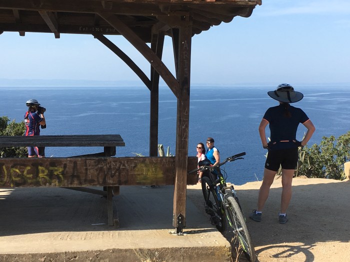 The day started rather late which is becoming a pattern, probably not on the bikes till nearly 10 AM. We had a few miles of the main road traveling it was not very pleasant, it was a very very hot day. But eventually we got to a much smaller road parallel to beach, even maybe 7 km of dirt and gravel. Everybody did pretty good today, it was by far the most enjoyable day riding so far, the most beautiful views of the unspoiled rocky cliffs and periodic sandy beaches. Not much else to say other than it was a very very nice day.