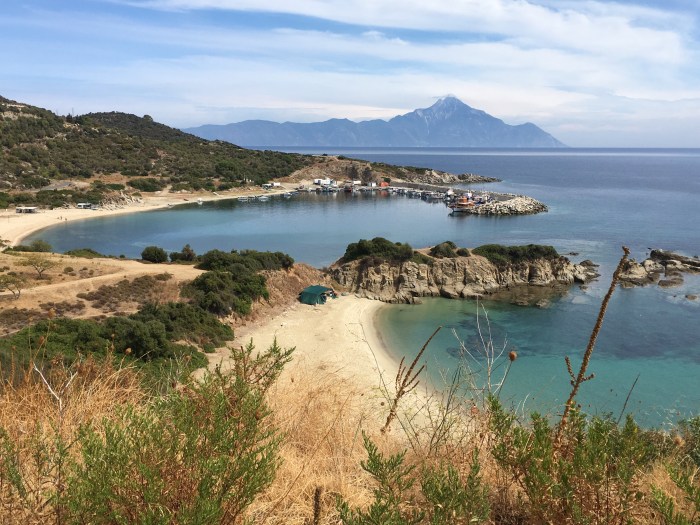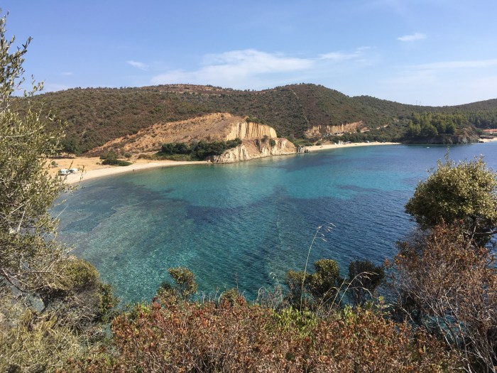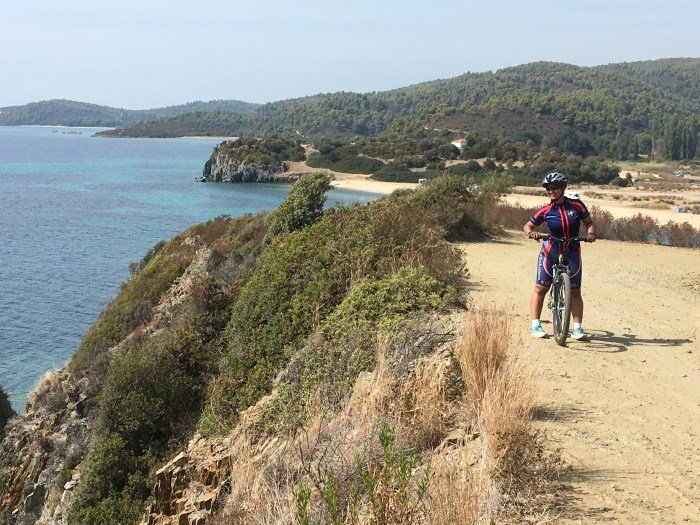 Day 6 This route starts with a 12 km ride over the mountain down to the beautiful beach of Kalamitsi where you can have a swim and short rest. Next, we follow the main rolling coastal road passing through numerous small villges and we finish up in Vourvourou resort- an area with great beaches and views towards the Diasporos Island.
