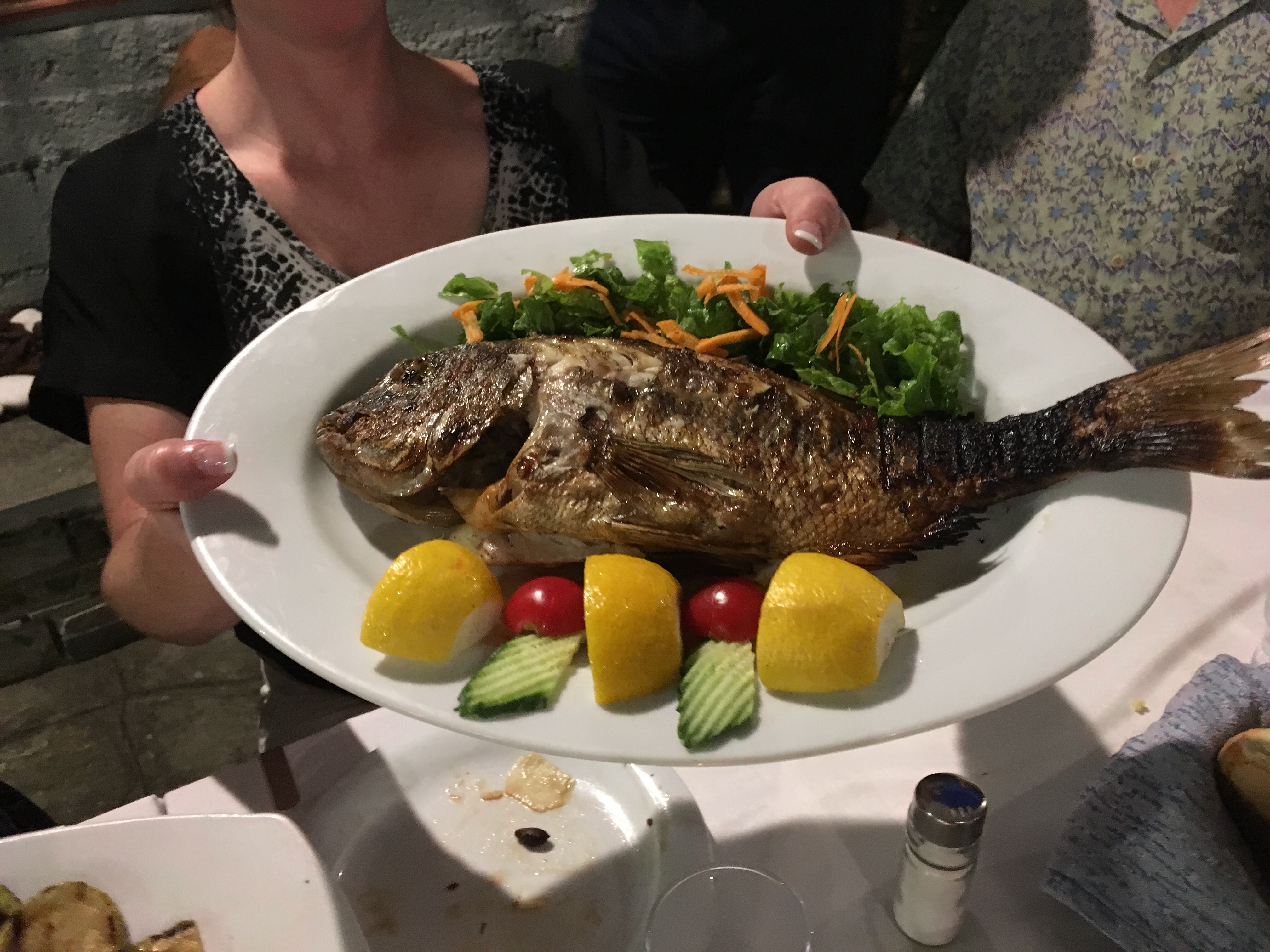 Had a great dinner at the restaurant a short walk from our hotel. Everyone except me had fresh fish of some sort, including whole squid, grilled octopus, and some whole body fish. Perhaps one of the best dinners we’ve had on the trip.