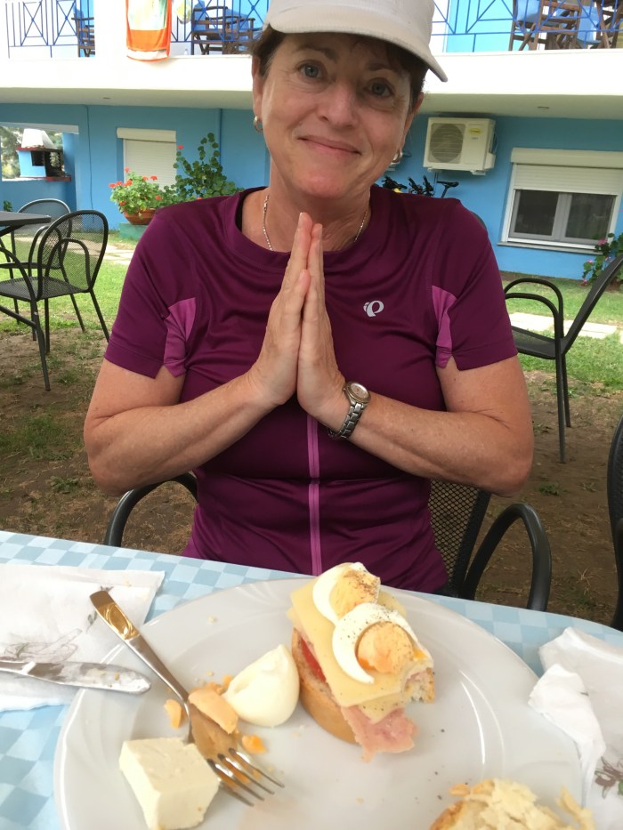 Well as it turns out, I am still a certified member of the refi club! Rode every mile today, I was lucky in that once the storm passed in Porto Kofu, I continued through all the way without a lunch stop. I accidentally got ahead of the van and the group for quite some distance and missed the lunch stop, Orlin caught up with me and said I should go back to lunch, but there was no way I was going backwards and especially downhill. So I continued on, lots and lots of climbing, over 3000 feet today, but eventually got to Vourvouro!
