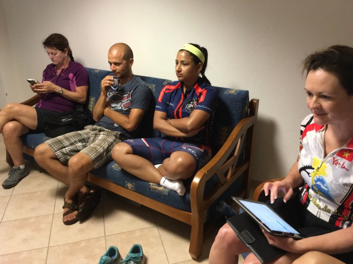 I immediately sat down at the café next to the hotel we were checking into and had a massive burger with a fried egg, barbecue sauce, grilled onions, bacon, chili peppers. It was a messy slippery thing that was very challenging to actually logistically eat, but it sure was good! The gang arrived a bit later, they got caught in some rain as they were running a little bit later in the day than I was. It was a great day! Other than the photo of us sitting and waiting for the storm to pass, I think I might have one or two photos of the whole day as it was overcast and near rain frequently, so I didn’t have my phone out very often…