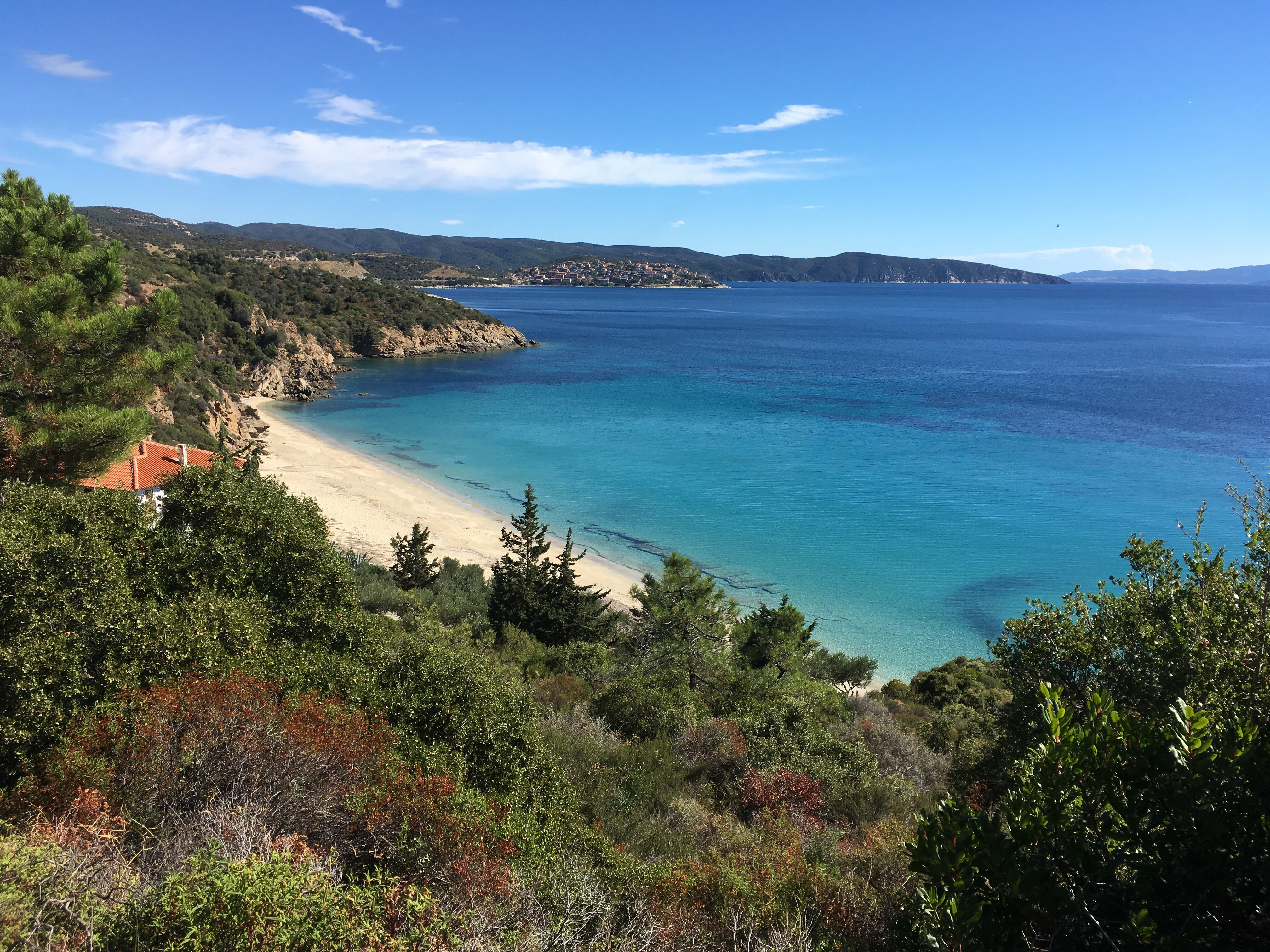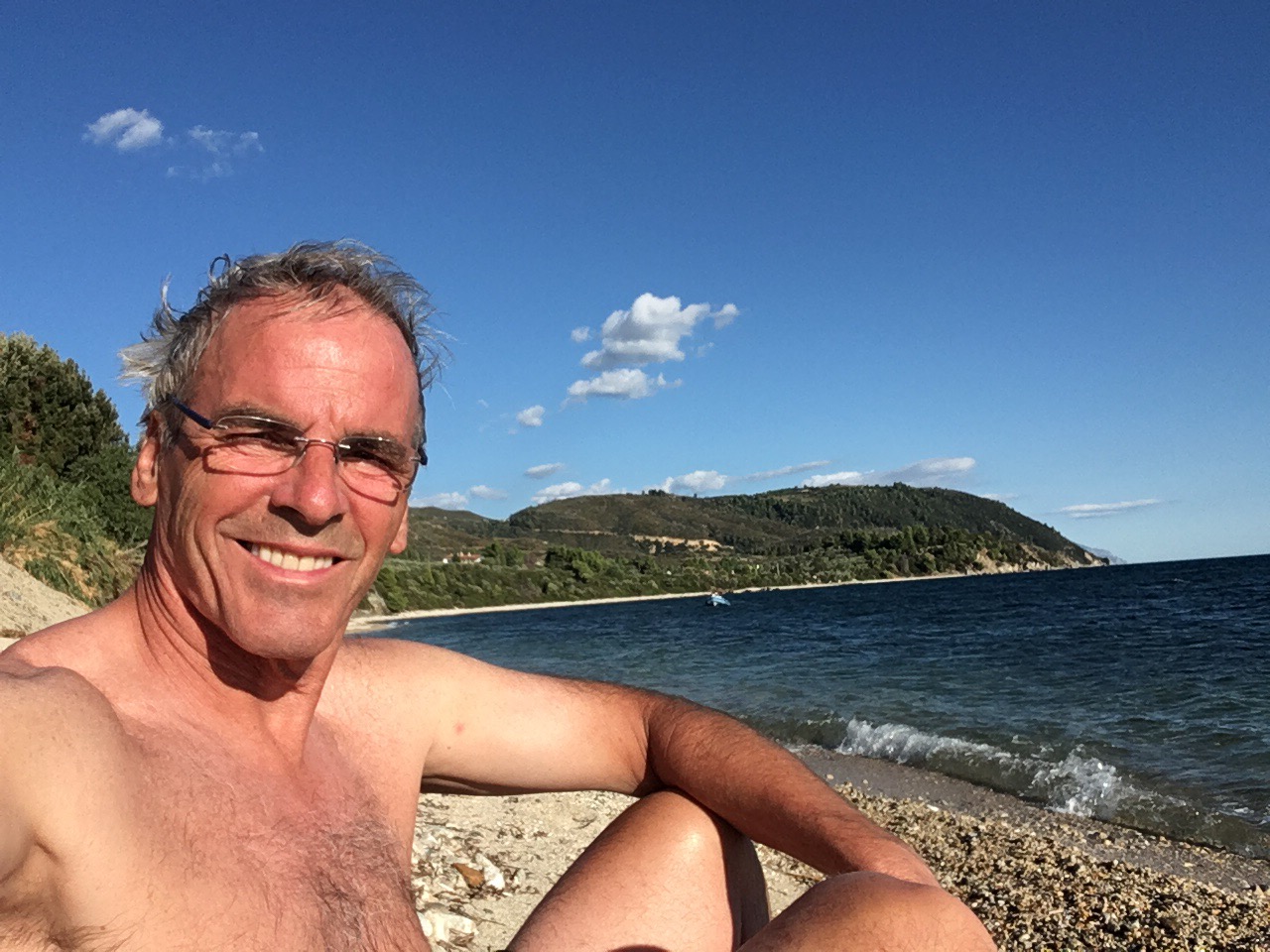 Despite the off-road effort to get up over the backbone of the third finger called Athos, I was rewarded with a beautiful ride across steep rocky dirt roads with absolutely nothing and nobody else around. Really did remind me of the great divide, it was a great day. Eventually I found my way back to the main road. All day was just spectacular scenery, the ocean was always visible one direction or the other the entire day. Such blue turquoise waters! On arrival in Ouranoupoli, I stopped at a little beachside café and had a well earned plate of spaghetti Bolognese. And a deliciously cold beer. Eventually the rest of the gang rode by and I yelled them down, they all joined for a cold beer before we checked into the hotel. A good fun finish to the day.