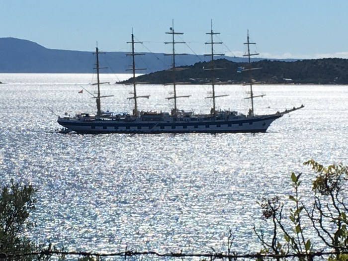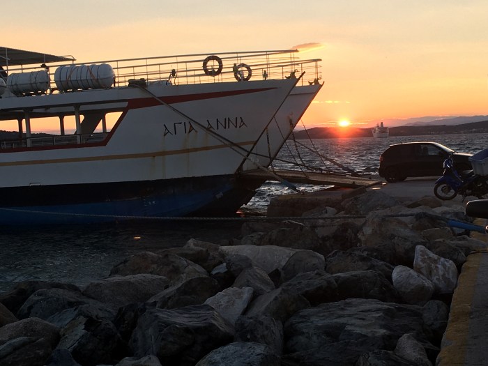 But a good dinner with a few gin tonics, and then some Tsipouro out on the back deck of the hotel. It was very nice, it is a mixture of a grape alcohol and anise, very tasty. I think I had made a disparaging comment about Ouzo earlier in this blog, not deserved. It’s actually really good. Tsipouro is different and is primarily a grape-made alcohol either with or without anise. With anise is delightful! It is generally about 40% alcohol, similar to gin.