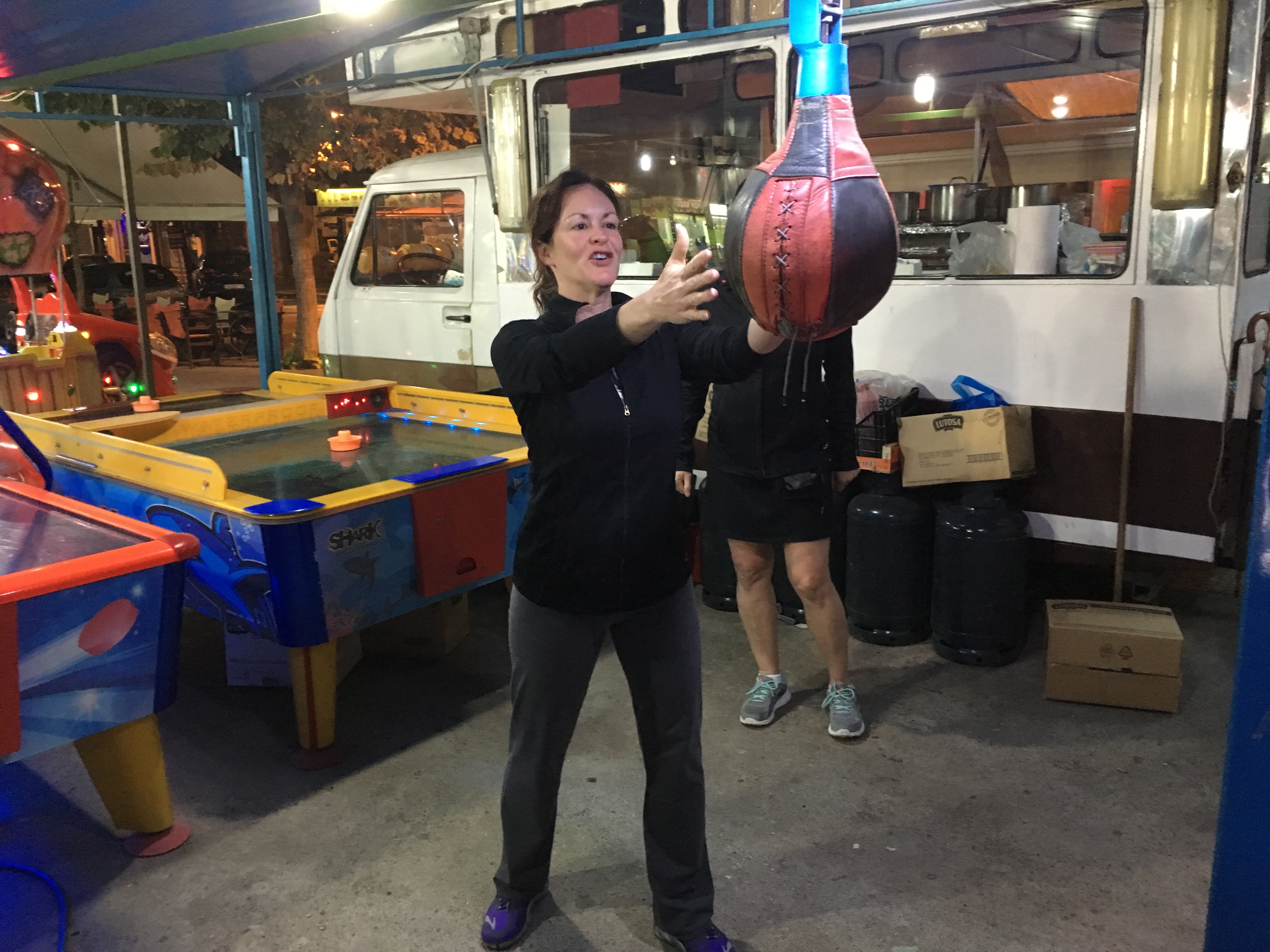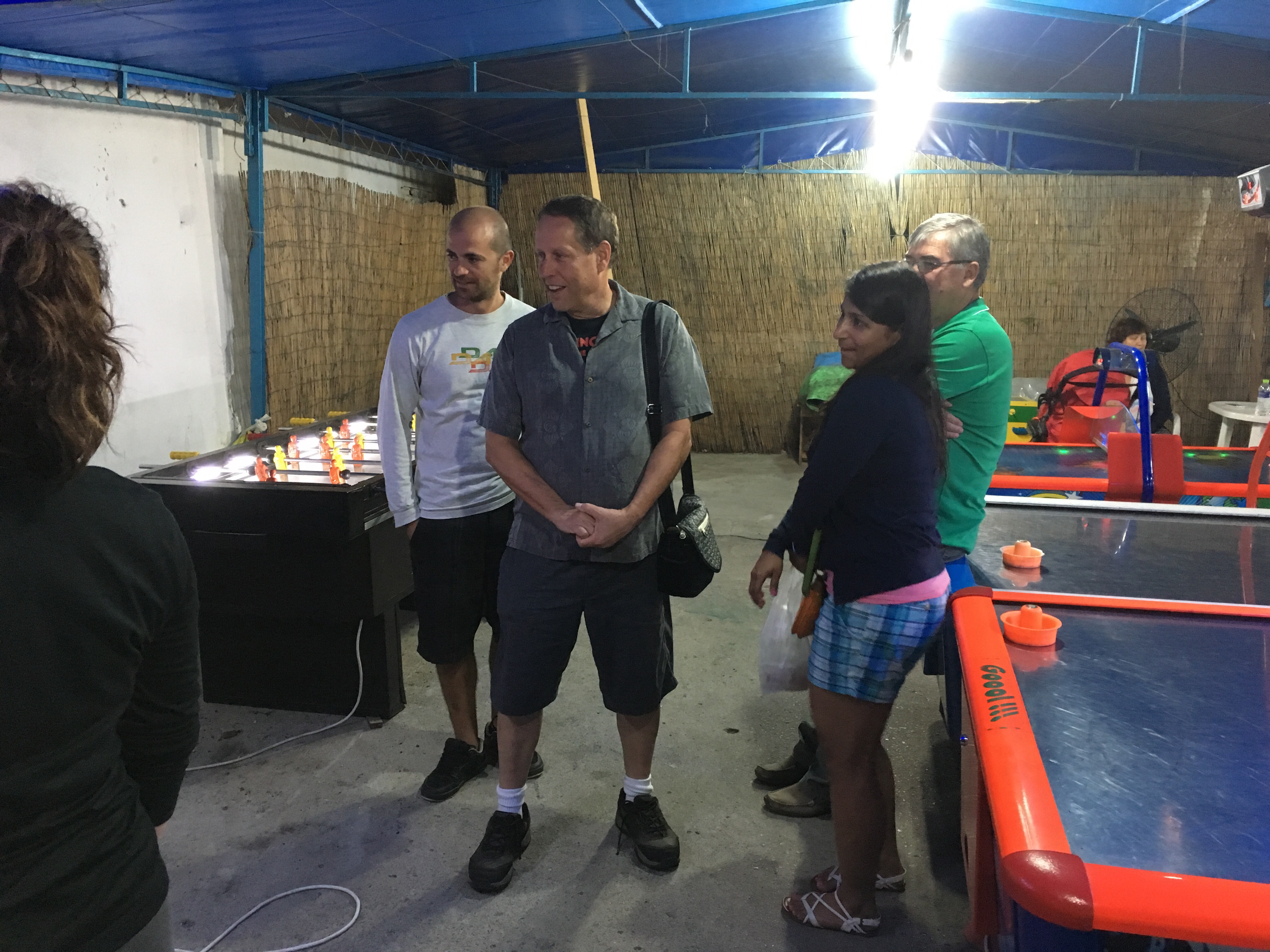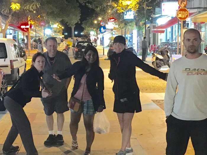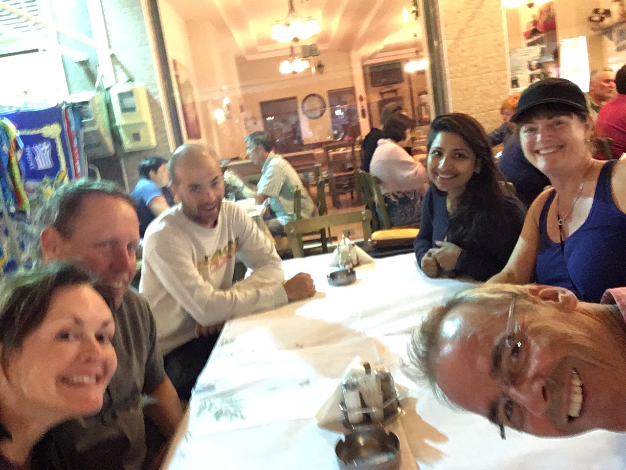 After the boat ride and nice lunch with some chilled Tsipouro, we drove a couple hours back to a hotel nearer to Thessaloniki. We had our final dinner together, reminisced over our cycling days together; then stopped by a little game area we walked by and played a couple games of group foosball! I invited everybody back to my room for a nightcap Tsipouro, as Swati and I head to the airport around 5 AM, want to make sure we had a chance to say our goodbyes to Paul and Rebecca and Sheri.