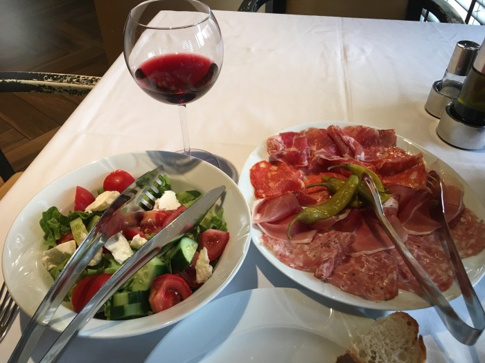 My gosh, what a lovely breakfast, I bet I didn’t even get a picture of it but it is so common to get beautiful tasty ripe tomatoes, sliced cucumbers, of course always balsamic vinegar, it was an omelette, a couple chunks of cured meat and a couple chunks of cheese. Some bread as well. Fresh squeezed orange juice, double espresso. Yeah baby, that’s living! I got to say the food has been just so delightful here!