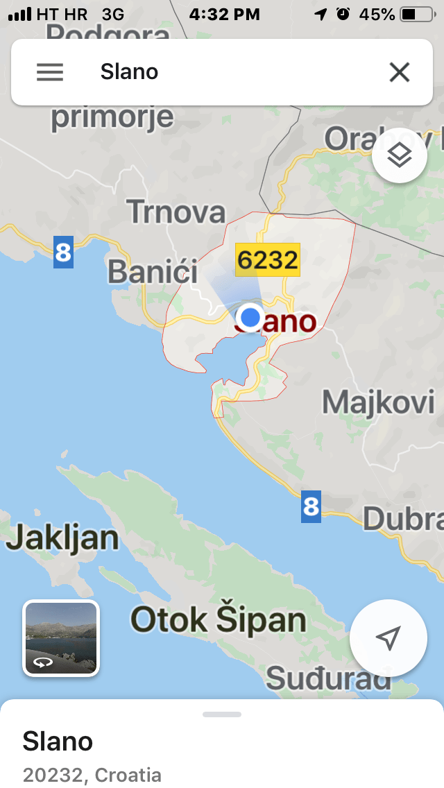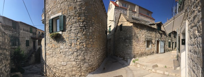 So I looked at Google map to see where the apartments were, that’s what they call them here, rooms for rent basically. Well in that town, there were definitely a few possibilities, but I think as it early in the tourist season, some not open yet and was really nobody there to talk to about renting. The couple places I did find said they were full. So I got a little worried, and after an hour of riding around in the hills trying to find a place, I found one little studio apartment at street level that looked perfect. It was an apartment sign on the house, so I started walking up the steps and started talking to the older classic Slavic looking woman who I eventually discovered her name was Annie. I think she was taken aback by my insistence of trying to find a place, but there are only two more possibilities ahead of me and then I was out of options so I thought I would just try to get this place that looks perfect for me. Well as it turns out, it is a rental unit that was completely not prepared for use whatsoever, look like she had been doing her plant potting and stuff in there, bugs everywhere, spiderwebs, but as it was sort of a little apartment built into the hill, it was very cool and I was so tired, I was thankful she, despite the total language barrier, agreed to let me stay. It was just 150 HRK which is about $25 US.