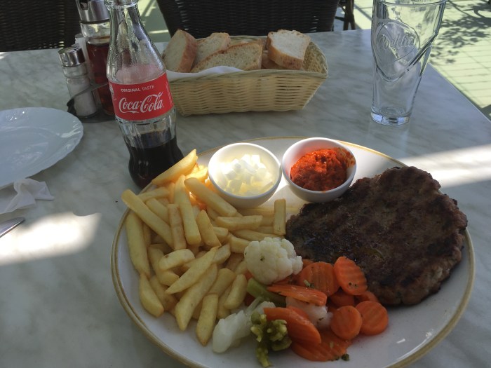 He took it slow with me until we got to Slano where we stopped and had a proper lunch. Realizing I needed salt, I added salt my hamburger before I tasted it and my gosh that was a bad idea! It made it almost inedible, though I did try to choke down a few bites. My appetite been very low on this trip, another unusual thing for me. Usually when I cycle I eat every damn thing that gets put in front of me, this trip I’ve left a couple of meals substantially uneaten.