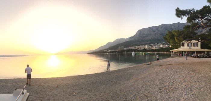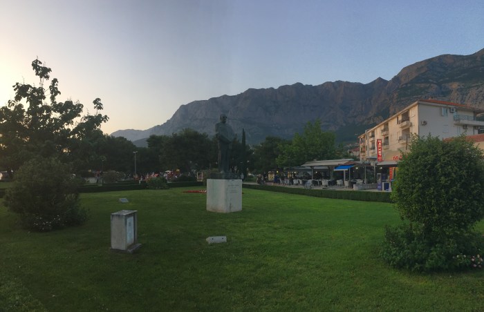 Makarska is beautiful town right on the water with a beautiful shared public park area with restaurants and stuff right on the water. Interesting comes to mind that Franco always said that Americans always have their own play structures in the backyards, instead of just going down to the playground. Well this park was right on the water, many benches, there was also like a carnival type area, numerous restaurants, a really good spot.