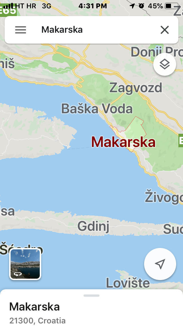Made it to Makarska, About 40 miles. That was my target and was happy to make it. When I pulled into the medium-size town, I hadn’t been pulled over on the sidewalk for more than 30 seconds when an old gentleman on a motorcycle stopped by and asked me if I was looking for lodging. He said follow me, so I went to his place and he had a home upstairs with maybe three little apartments downstairs. I thought it was going to have the place to myself, it was perfect and about $35, so I was pleased to be there.