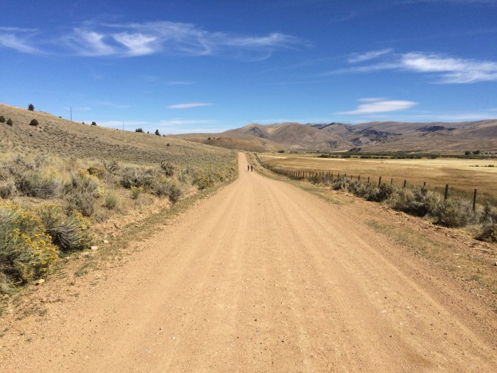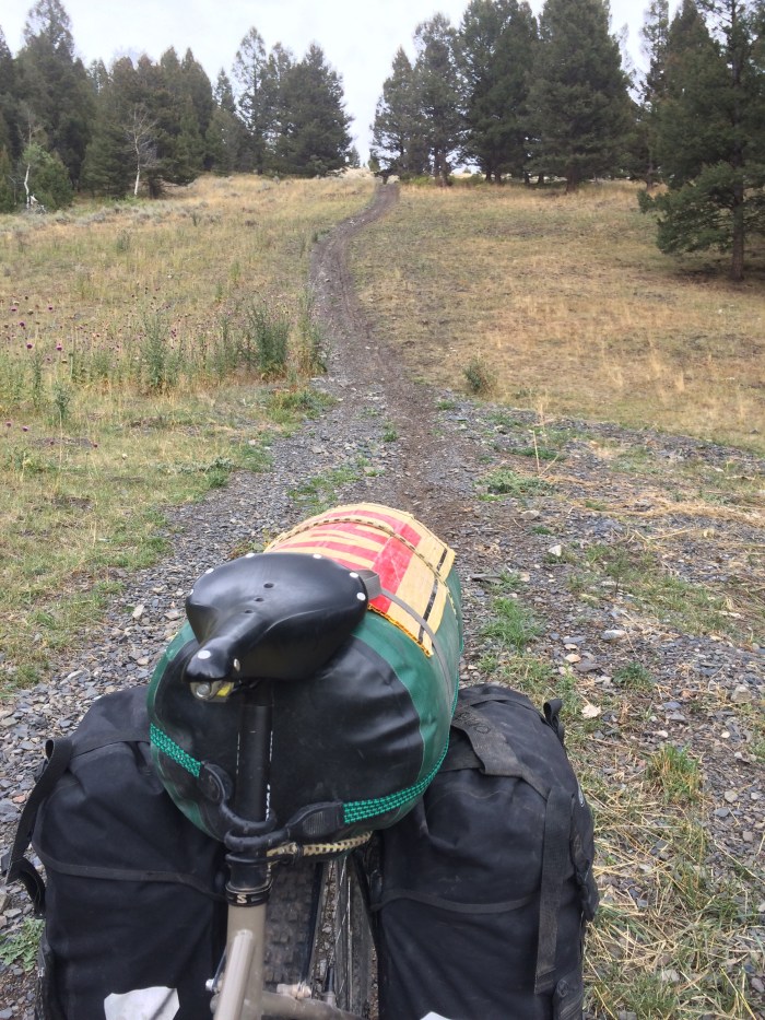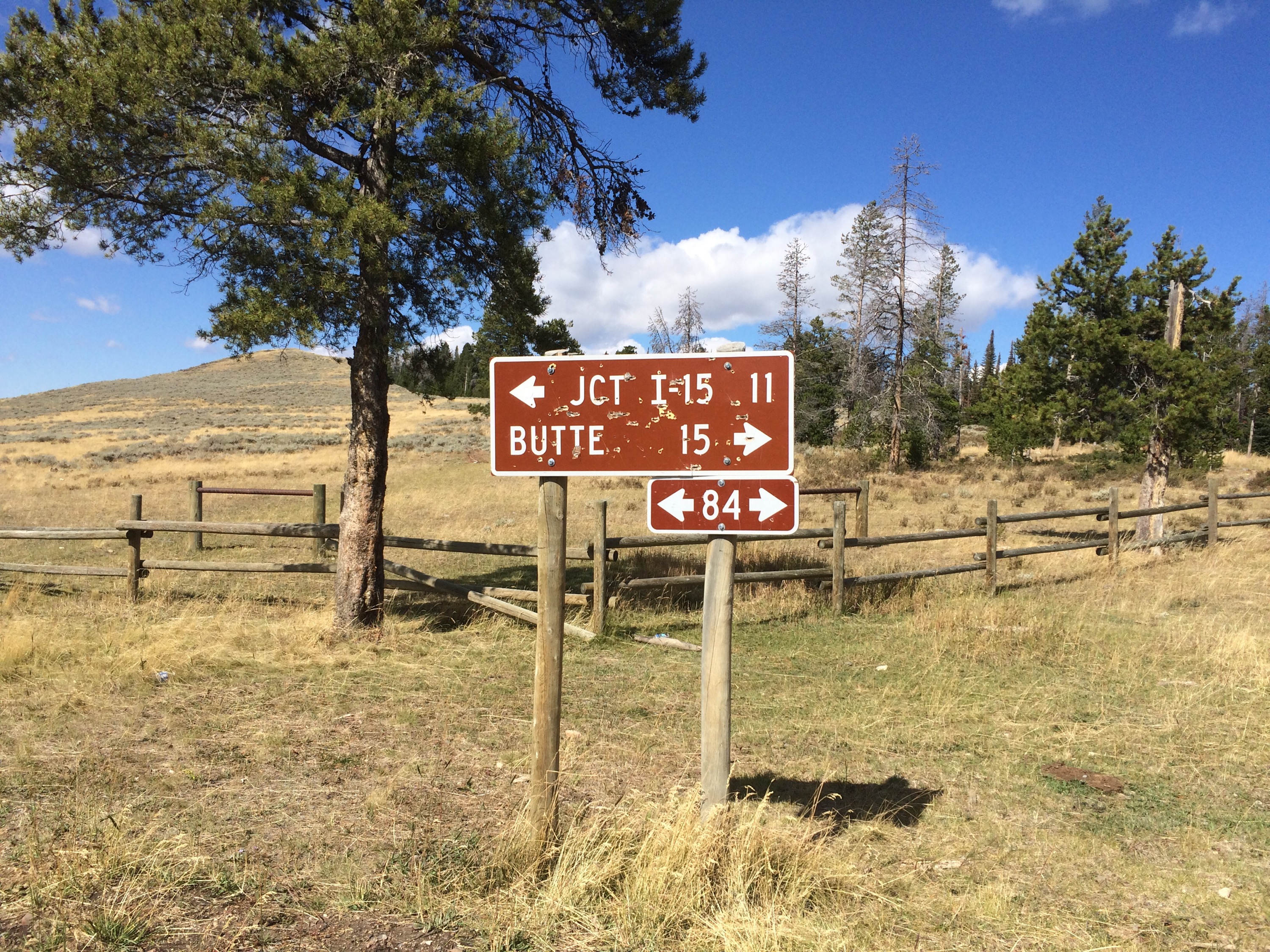 A seemingly short ride 32 miles to Highway 20 over Red Rock Pass at 7100′. There was a nice sign marking the Divide there!