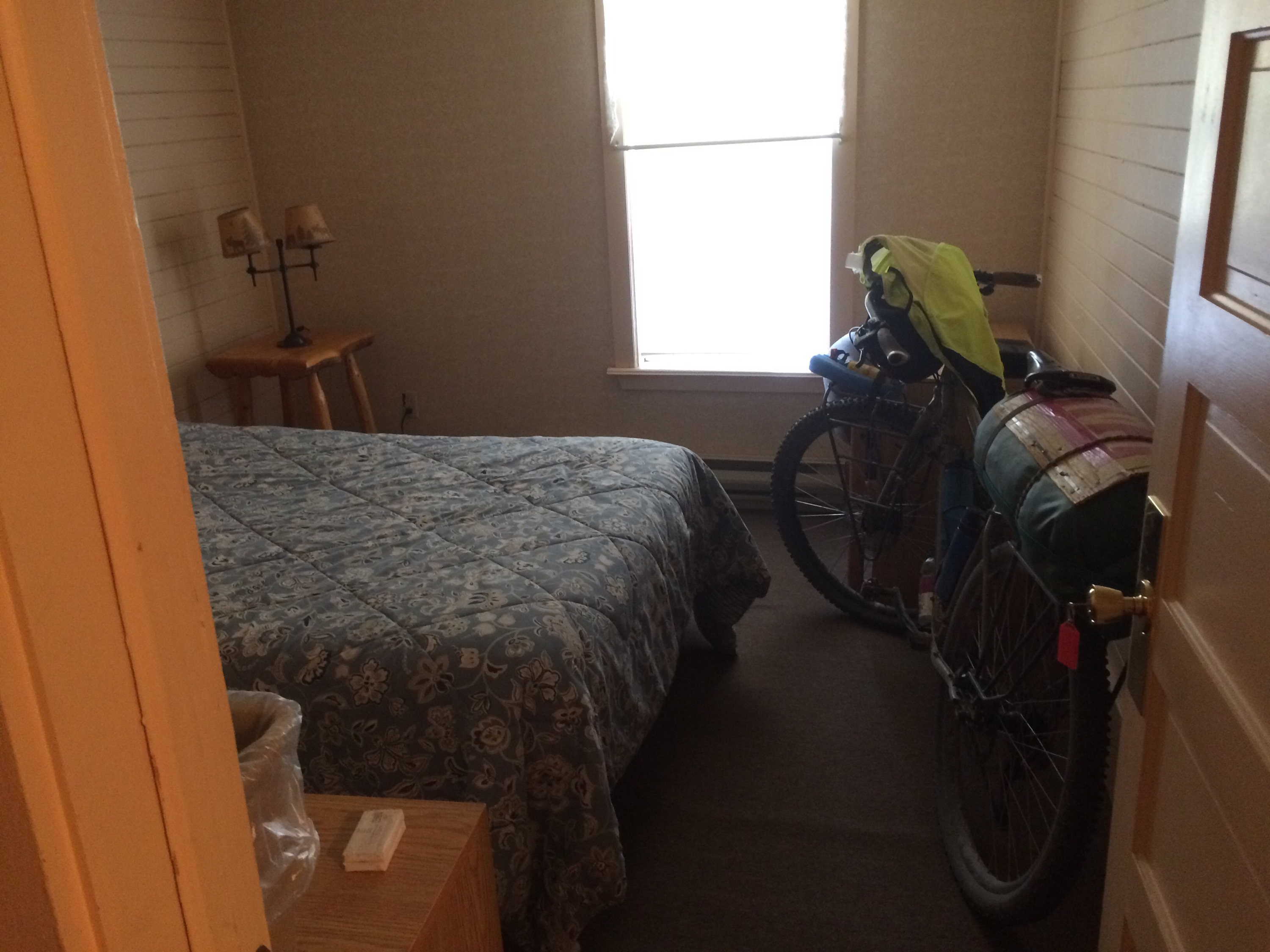 Somewhere I came across a very sleepy bunny in the middle of the road… And somewhere below there’s a picture of my McGyver version of getting my biking laundry near the heater at the rustic motel…