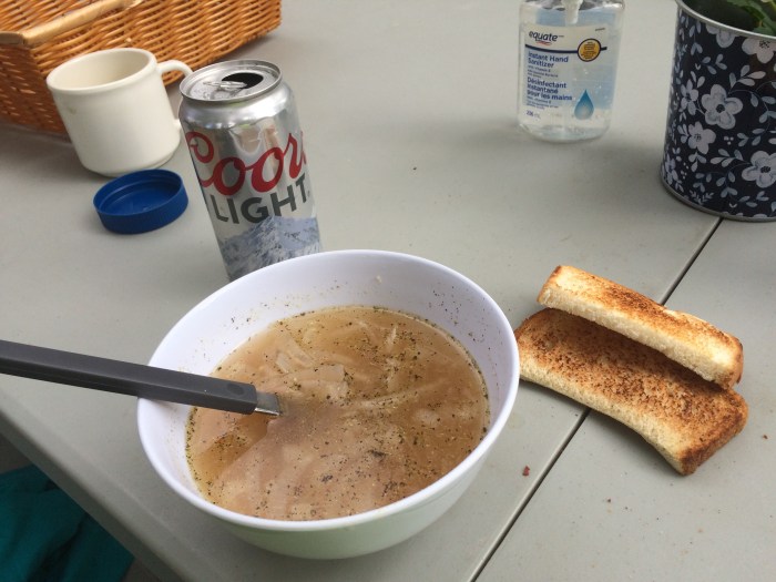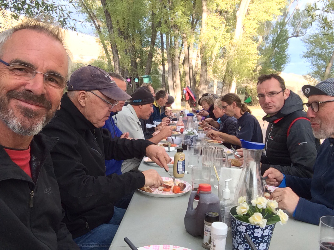 Scott and Lolita Pine from McCall Idaho proceed to offer me a cold beer, but I have camp to set up and rinsing off some salt and dust off me first. Eventually I get over there, because a cold beer is nirvana after a days ride. We have a great conversation, eventually the Makers Mark comes out, and finally they cook me an incredible steak, green bean, and tossed salad dinner!! Certainly the best dinner of the trip so far! They were happy to hear my story, and I theirs. What wonderfully nice folks!!!! They invited me for latte in the morning too!!