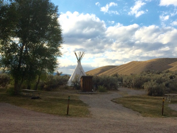 Finally arriving at the small campground on the shores of Red Rocks Lake after a long and dusty 57 miles, I see a truck and trailer with a couple about my age sitting out enjoying the amazing view. I stay hello, and they remembered passing me; said they couldn’t avoid dusting me because I was cycling too fast for them to pass me slowly. Funny!! (Must’ve been on a downhill…)