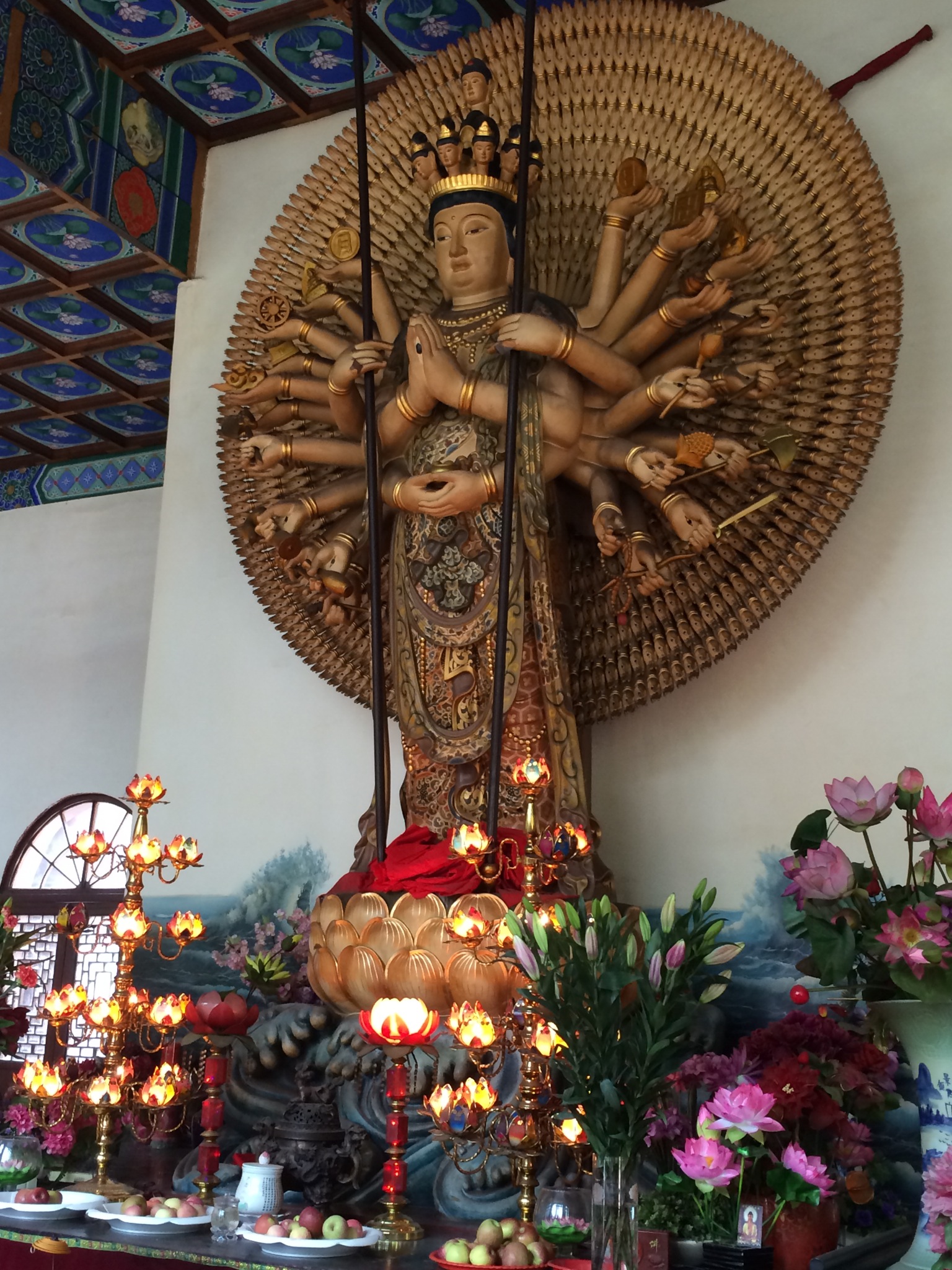 Very popular park with locals as well and at each gate, the roads approaching are lined with restaurants and shops and such. So as we came down out of the park, we all agreed we were hungry but there were dozens of little restaurants, by American standards, we would call them holes in the wall. As we walked by in our tourist stupor, we were invited in the one restaurant by an aggressive tout for one of them.